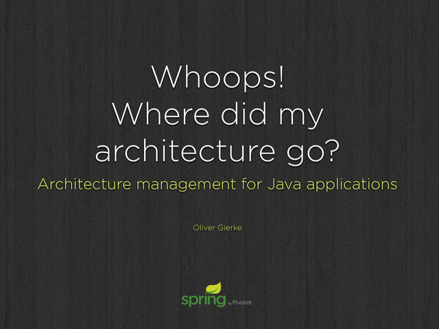 Slides of the talk on maintaining software architecture in Java applications I gave at GeeCON Prague 2014. @springcentral