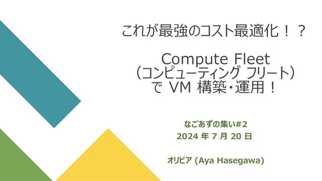 20240720 なごあずの集い#2 | これが最強のコスト最適化!? Compute Fleet(コンピューティング フリート)で VM 構築・運用!