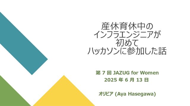 20250613 JAZUG for Women | 産休育休中のインフラエンジニアが初めてハ...