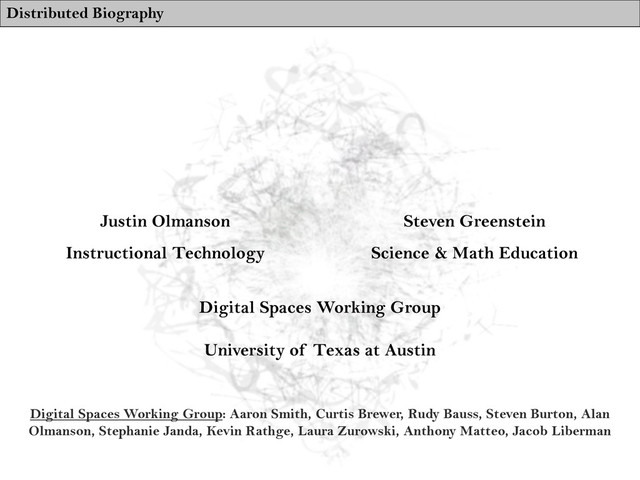 1. Distributed Biography Justin Olmanson Instructional Technology Steven Greenstein Science &
