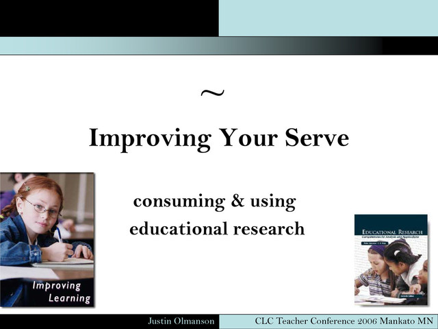 •Examples of Research from each Paradigm •Locating Personally Relevant Research Justin Olmanson Presentation Conclusion CLC Teacher Conference 2006 Mankato MN