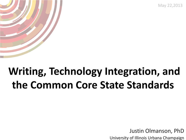 timeline • CCSS: The soaring rhetoric and critiques • Writing: From the literature • Writing: Formative assessment • Technology: Case study (Scholar) • Technology: Implementation