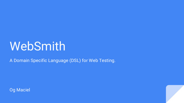 then: from websmith.actions import Go, SendKeys from websmith.ui import Session with Session(browser): Go('https://www.google.com') SendKeys('q', 'WebSmith')