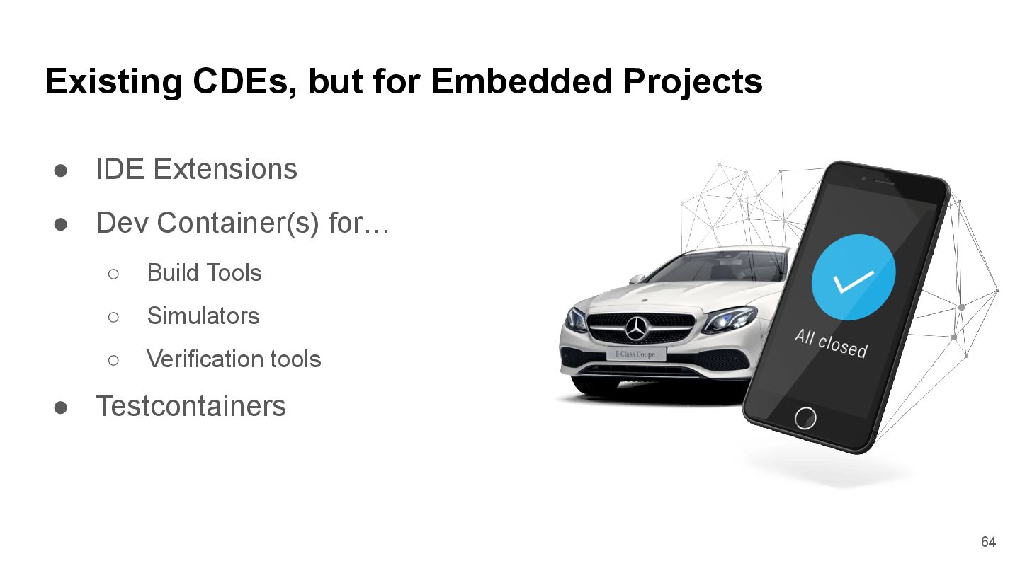 Embedded QA Engineers are entering a new era of development enabled by Cloud Development Environments (CDEs) like GitHub Codespaces or Devcontainers, where fully configured workspaces can run on laptops, Kubernetes clusters or public clouds. Containers and VMs, often managed with tools like KubeVirt and QEMU, and wrapped by frameworks like Testcontainers, enable scalable, hardware-aware test setups that support HIL testing, firmware validation, and system modeling. It might sound like a miracle, but it’s actually possible with modern tech stacks!