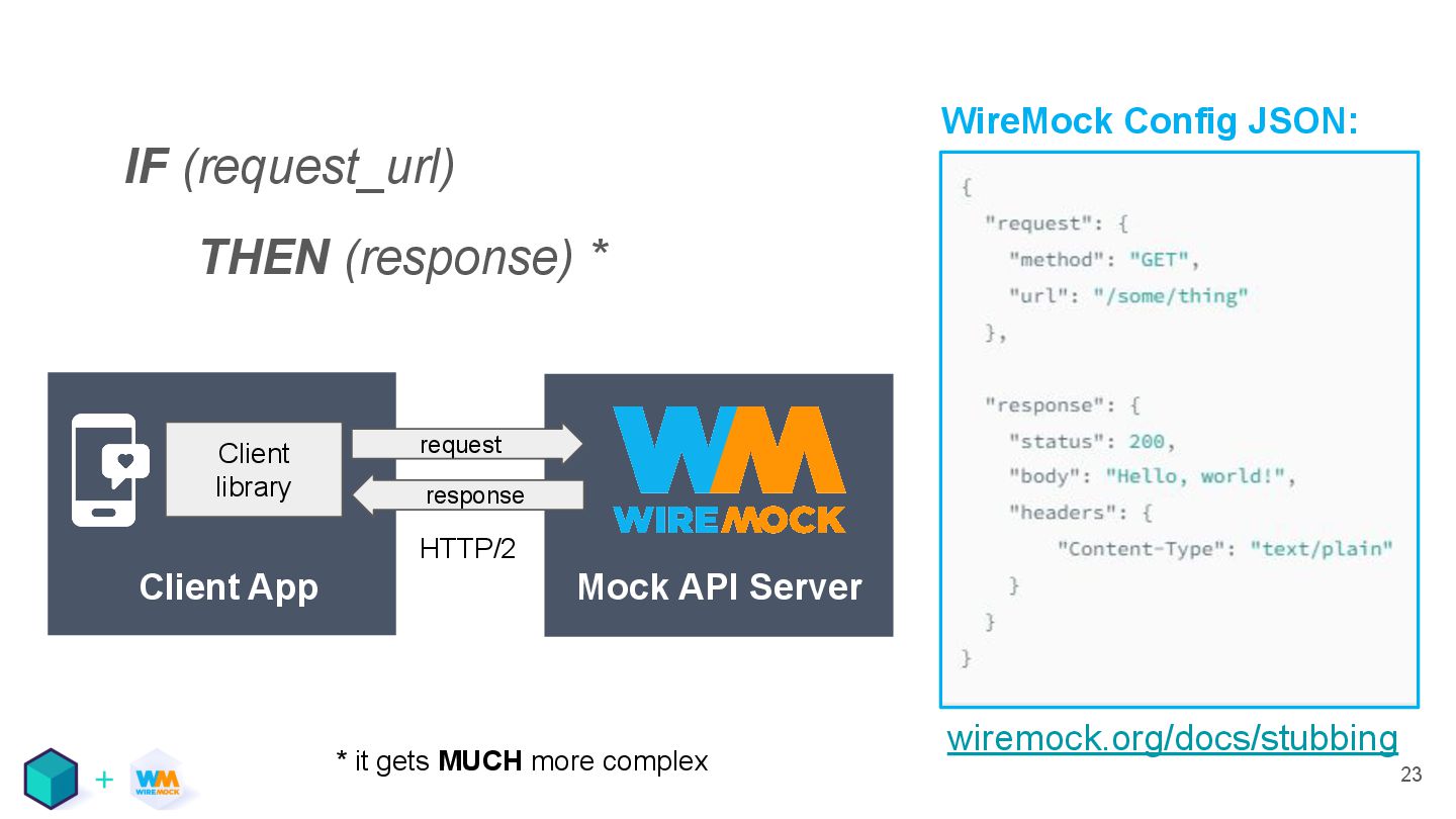 16. 23 wiremock.org/docs/stubbing IF (request_url) THEN (response) * * it gets