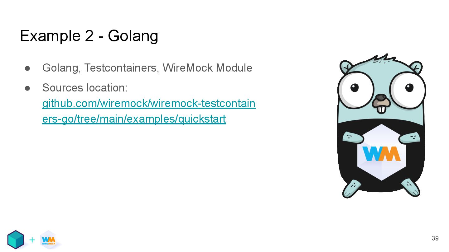 • Sources location: github.com/wiremock/wiremock-testcontain ers-go/tree/main/examples/quickstart