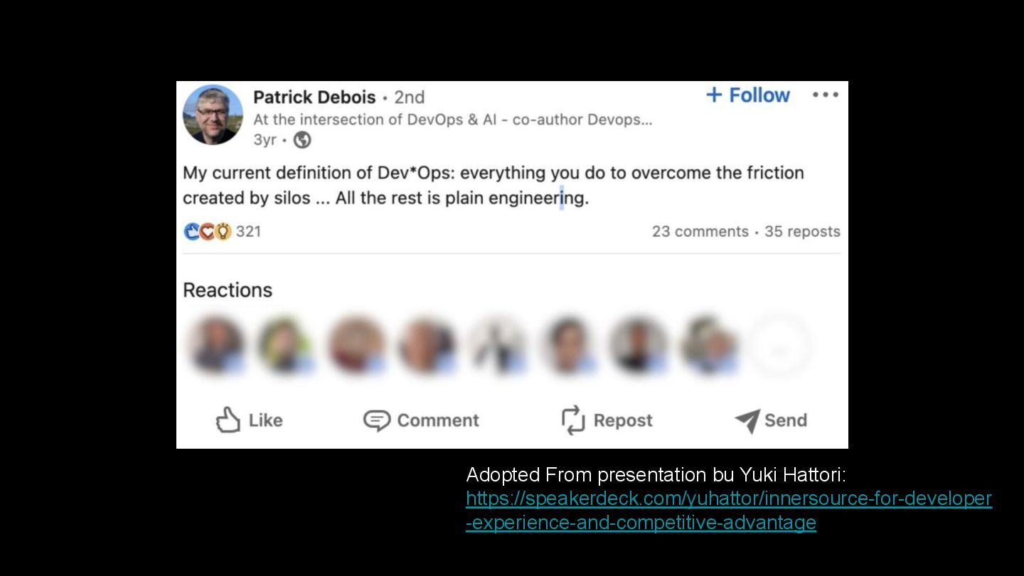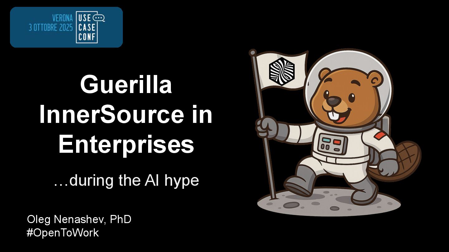 We'll discuss introducing an open collaboration culture, also known as InnerSource, inside rigid corporate structures that are not willing to change. The ongoing AI hype can be a great leverage—an excuse to form internal guilds, secure funding, and get executive attention for collaboration and productivity initiatives. How to get started without a budget or official blessing from higher ups? How to find allies and not burn too many bridges? And how to show impact when everyone's obsessed with KPIs?