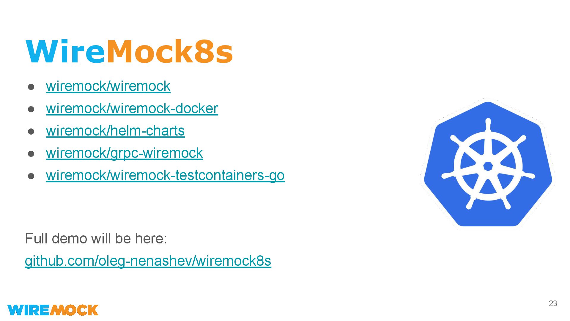 9. WireMock8s • wiremock/wiremock • wiremock/wiremock-docker • wiremock/helm-charts • wiremock/grpc-wiremock •