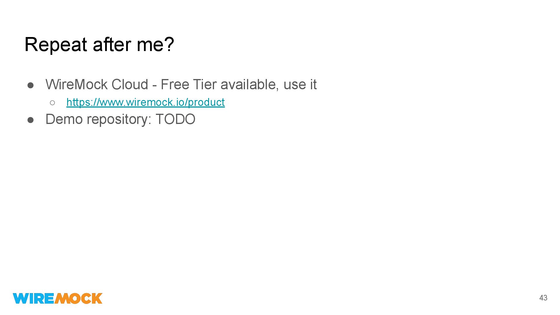 18. Repeat after me? 43 • WireMock Cloud - Free Tier