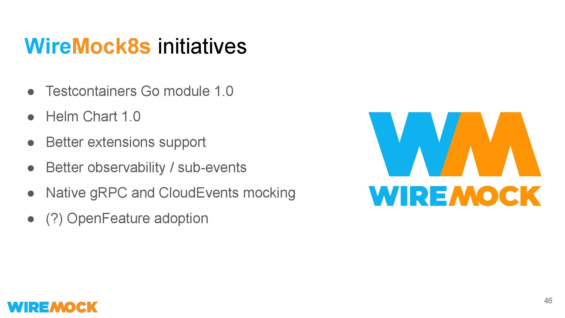 19. WireMock8s initiatives 46 • Testcontainers Go module 1.0 • Helm