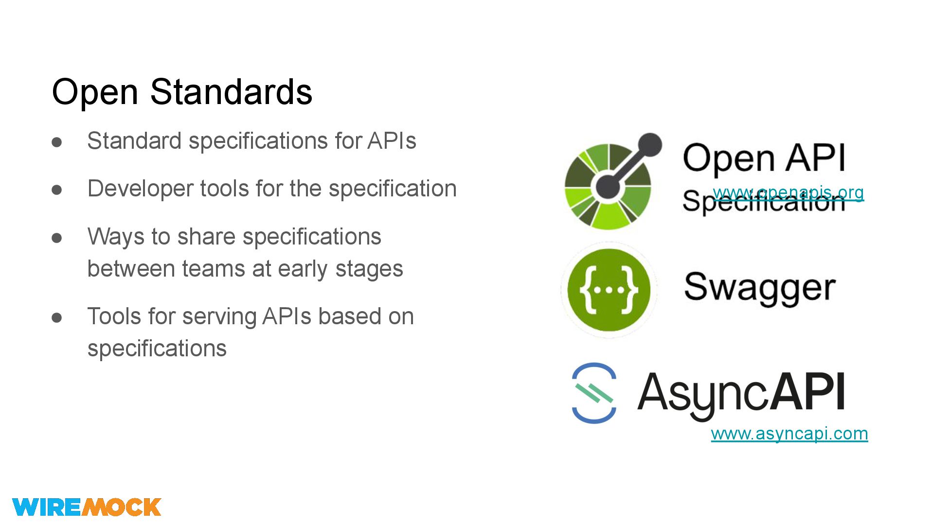 for the specification • Ways to share specifications between teams at early stages • Tools for serving APIs based on specifications www.openapis.org www.asyncapi.com