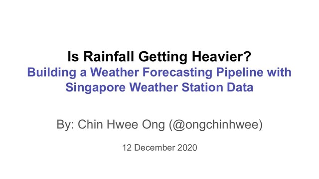 How many seasons does a tropical country like Singapore have? Is rainfall getting heavier? To answer these questions, we will explore how to build a data pipeline that extracts Singapore weather station data, so that we can explore weather trends and attempt to forecast the weather using the data.