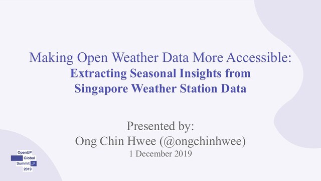 Singapore Weather Station Data Presented by: Ong Chin Hwee (@ongchinhwee) 1 December 2019