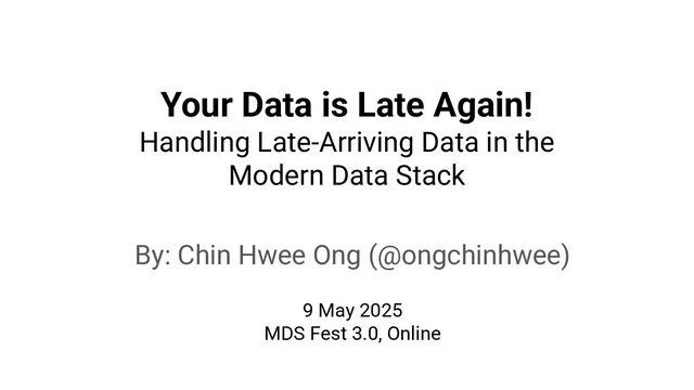When we say we are processing the "latest" data in the data warehouse, which timestamp are we referring to? Late-arriving data can happen in data warehouses due to operational and technical reasons that may require data corrections, posing challenges in ensuring accurate reporting of point-in-time historical dimensions in the data warehouse. In this talk, I will be exploring approaches on how we can design data systems and history-preserving data models that can handle late-arriving data in the modern data stack.