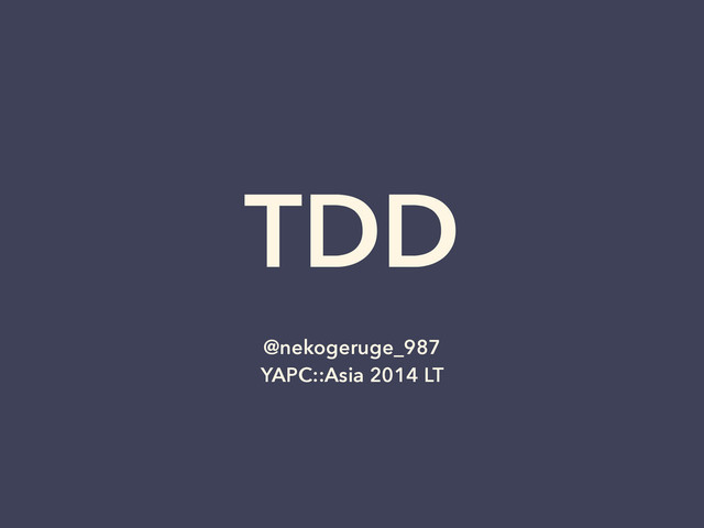 TDD @nekogeruge_987 YAPC::Asia 2014 LT