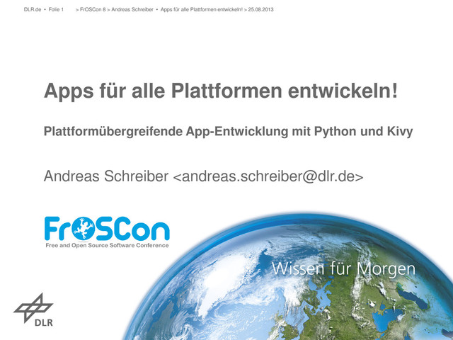 Thomas Hansen (@hansent) • Gabriel Pettier (@tshirtman) • and many others > FrOSCon 8 > Andreas Schreiber • Apps für alle Plattformen entwickeln! > 25.08.2013 DLR.de • Folie 44 Credits
