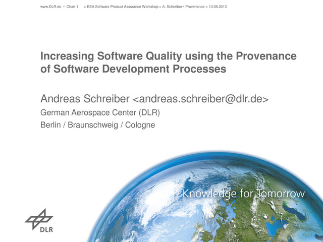 Andreas Schreiber <[email protected]> German Aerospace Center (DLR) Berlin / Braunschweig / Cologne > ESA Software Product Assurance Workshop > A. Schreiber • Provenance > 13.06.2013 www.DLR.de • Chart 1