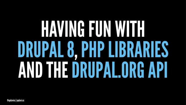 Drupal 8 module ▸ Configuration form to enter project IDs ▸ Queries the API ▸ Displays project information ▸ Retrieved data cached locally @opdavies | opdavi.es