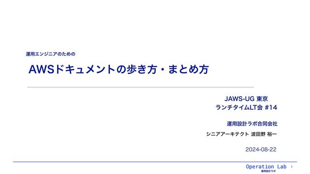 JAWS-UG東京 ランチタイムLT会 #14 での登壇資料です。