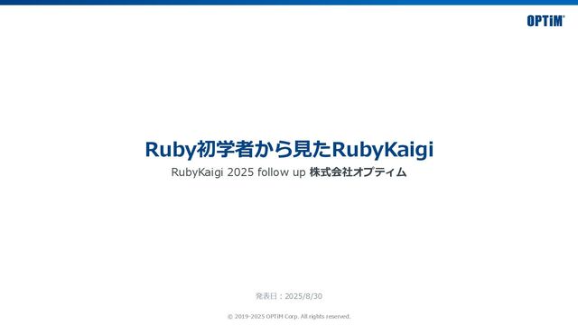 © 2019-2025 OPTiM Corp. All rights reserved. Ruby初学者から見たRubyKaigi RubyKaigi 2025