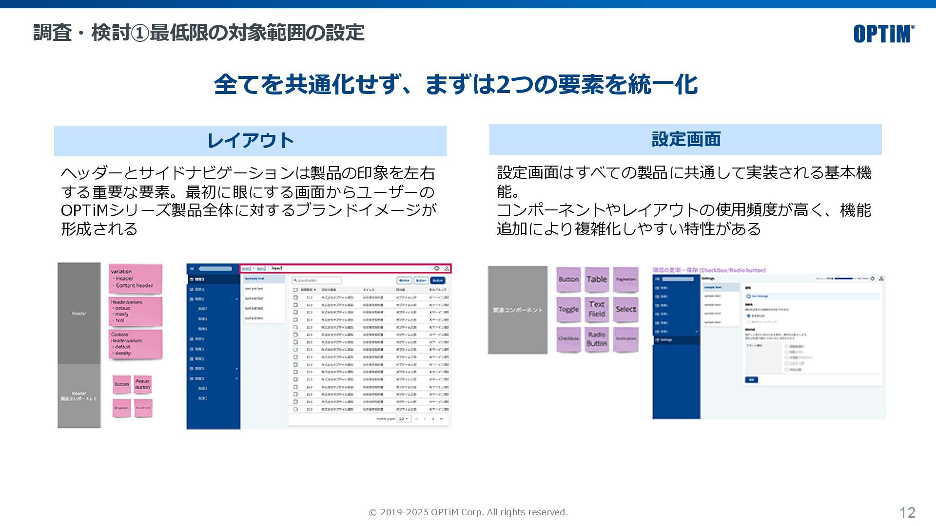© 2019-2025 OPTiM Corp. All rights reserved. 12 調査・検討①最低限の対象範囲の設定 レイアウト