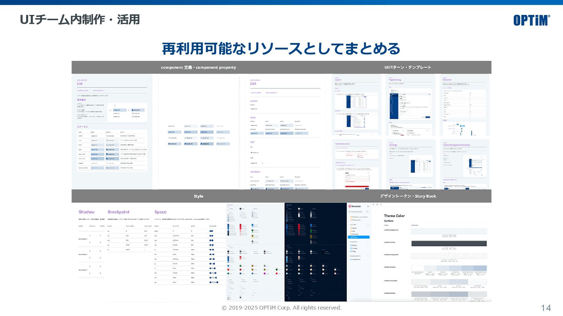 © 2019-2025 OPTiM Corp. All rights reserved. 14 UIチーム内制作・活用 再利用可能なリソースとしてまとめる