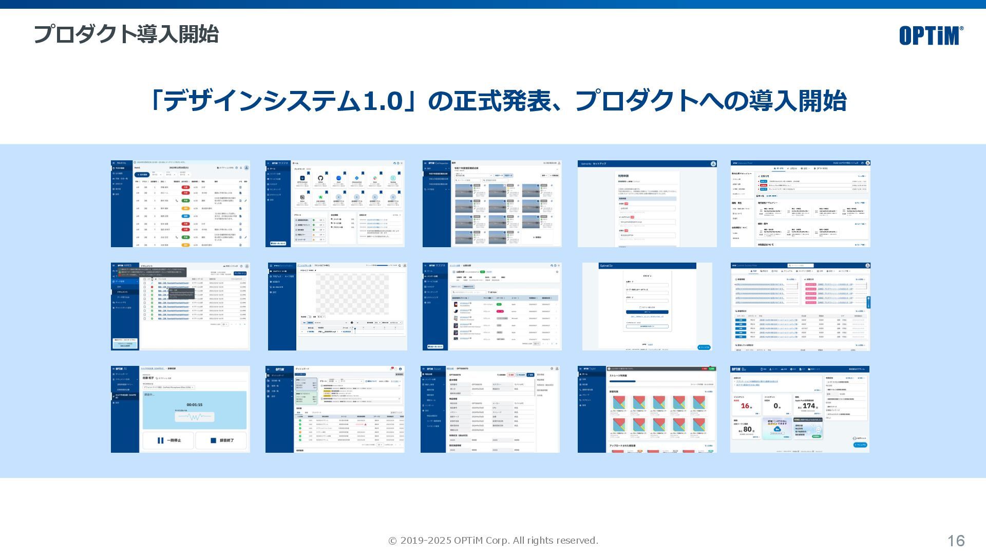 © 2019-2025 OPTiM Corp. All rights reserved. 16 プロダクト導入開始 「デザインシステム1.0」の正式発表、プロダクトへの導入開始