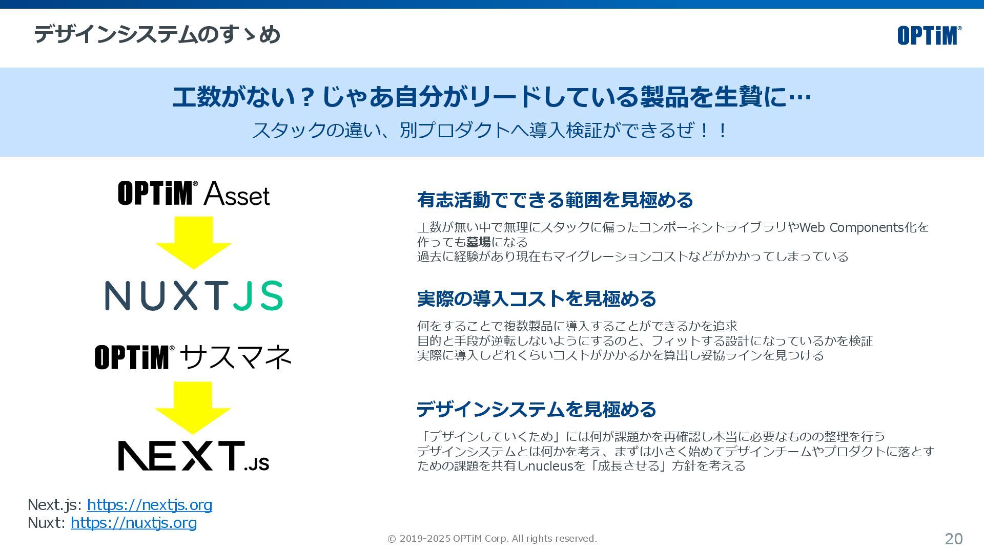 © 2019-2025 OPTiM Corp. All rights reserved. 20 デザインシステムのすゝめ 工数がない?じゃあ自分がリードしている製品を生贄に…