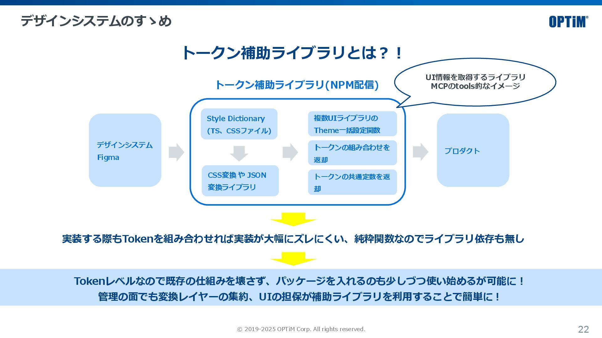 © 2019-2025 OPTiM Corp. All rights reserved. 22 デザインシステムのすゝめ トークン補助ライブラリとは?!