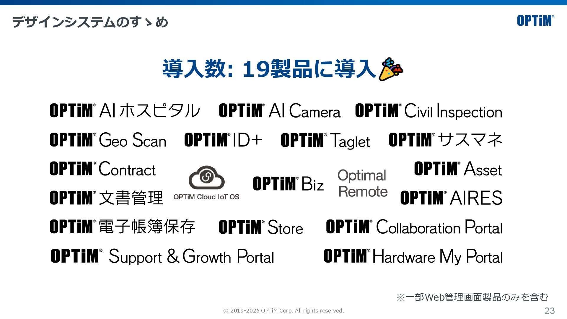 © 2019-2025 OPTiM Corp. All rights reserved. 23 デザインシステムのすゝめ 導入数:
