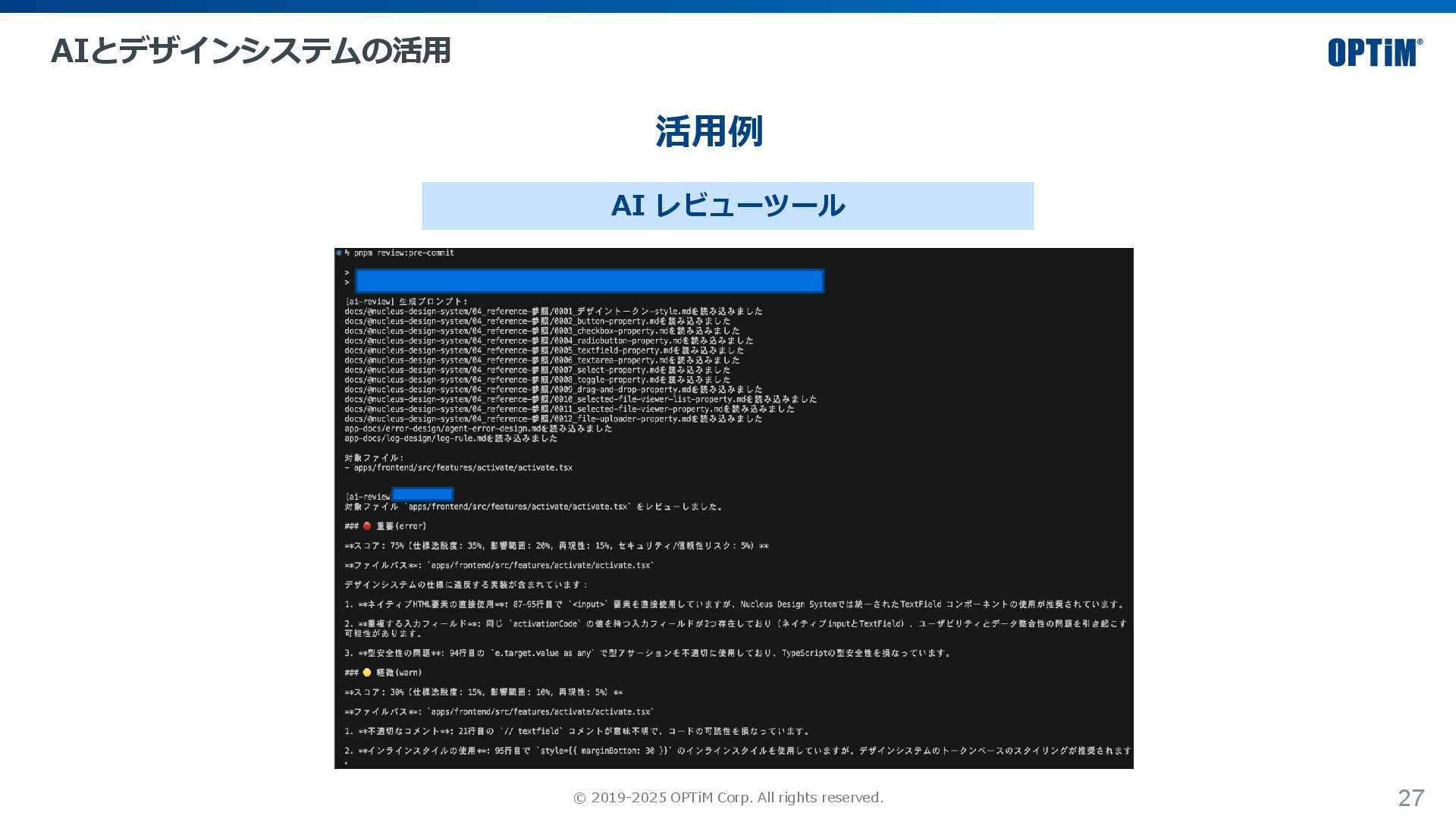 © 2019-2025 OPTiM Corp. All rights reserved. 26 AIとデザインシステムの活用 OPTiM