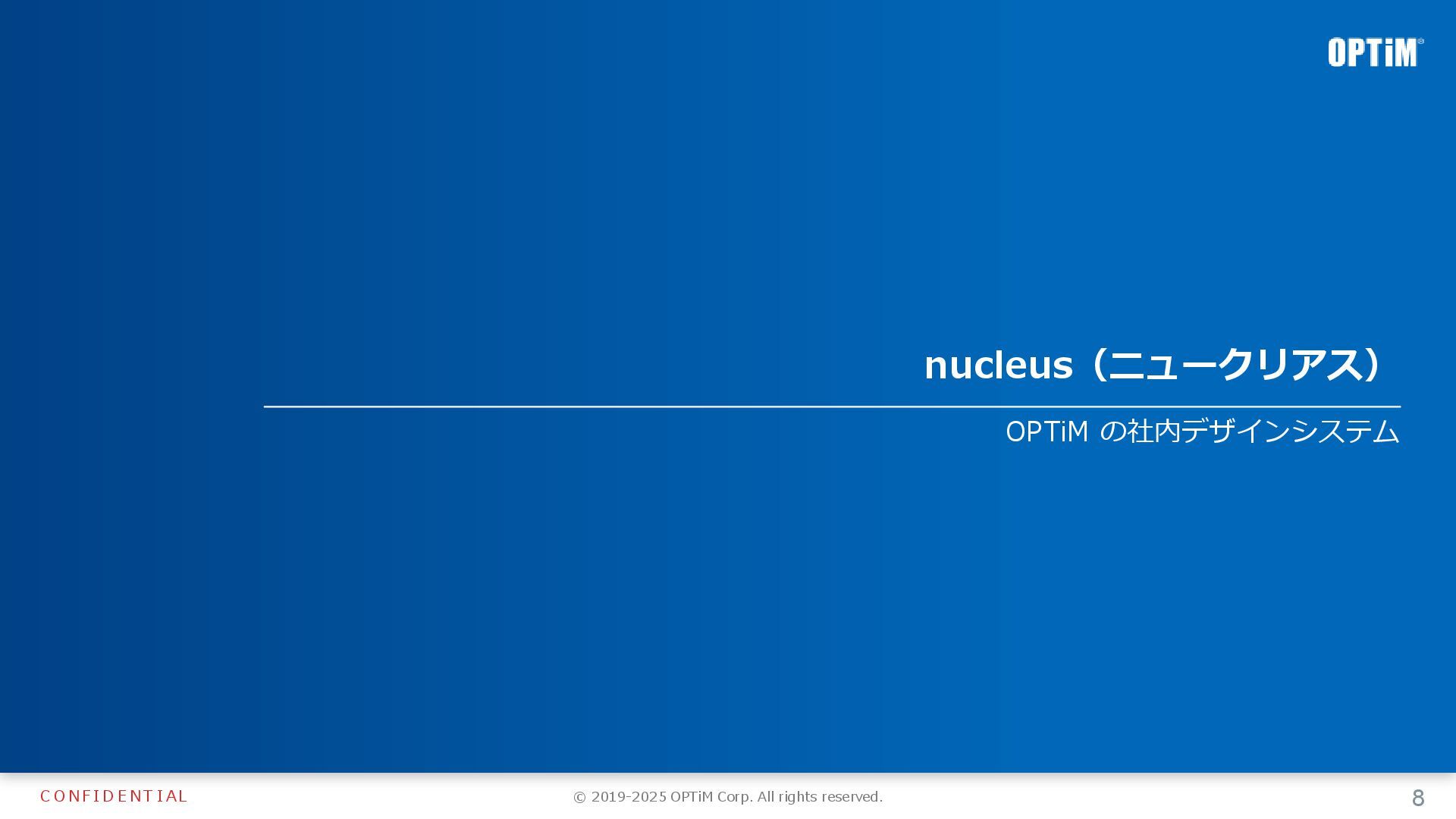 A L © 2019-2025 OPTiM Corp. All rights reserved. 8 nucleus(ニュークリアス) OPTiM の社内デザインシステム