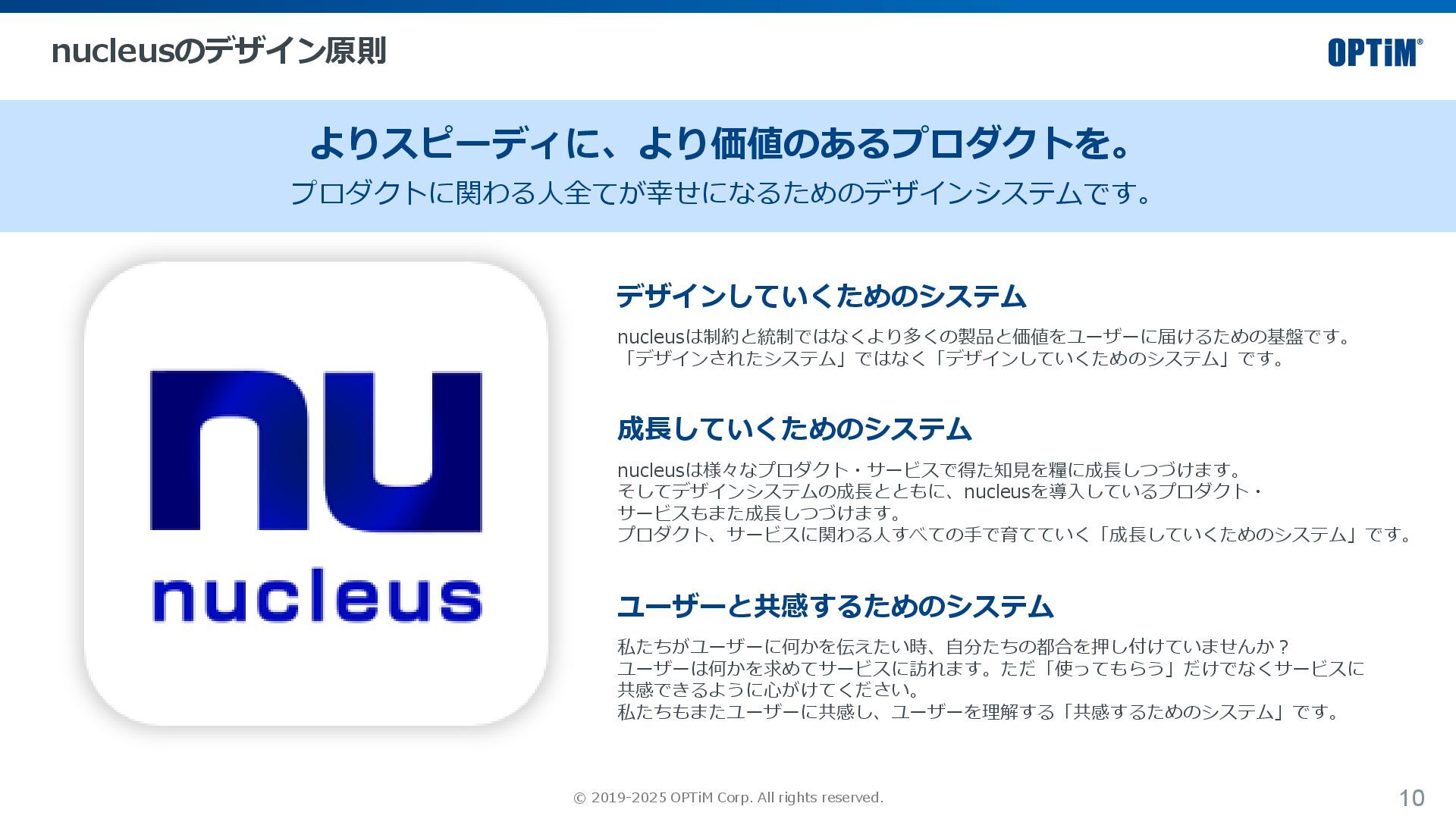 © 2019-2025 OPTiM Corp. All rights reserved. 10 nucleusのデザイン原則 よりスピーディに、より価値のあるプロダクトを。