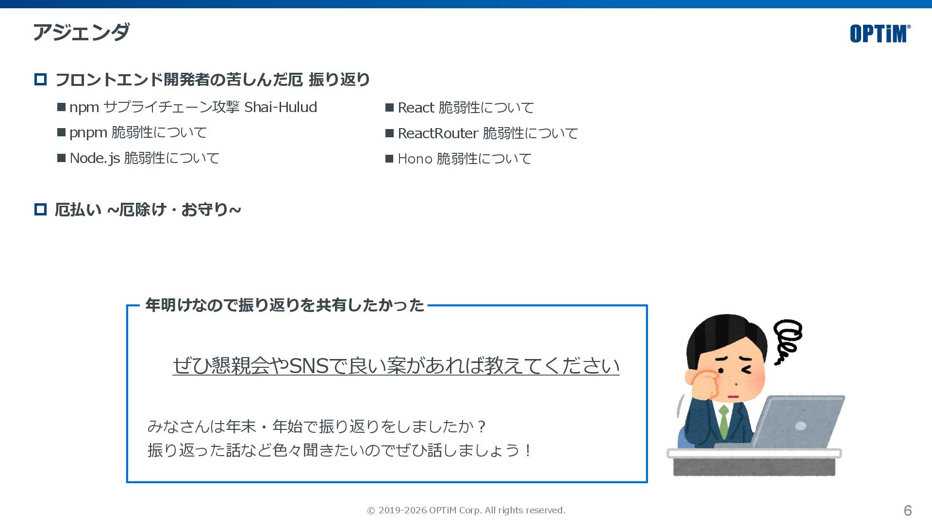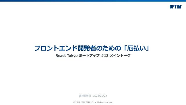 © 2019-2026 OPTiM Corp. All rights reserved. フロントエンド開発者のための「厄払い」 React Tokyo