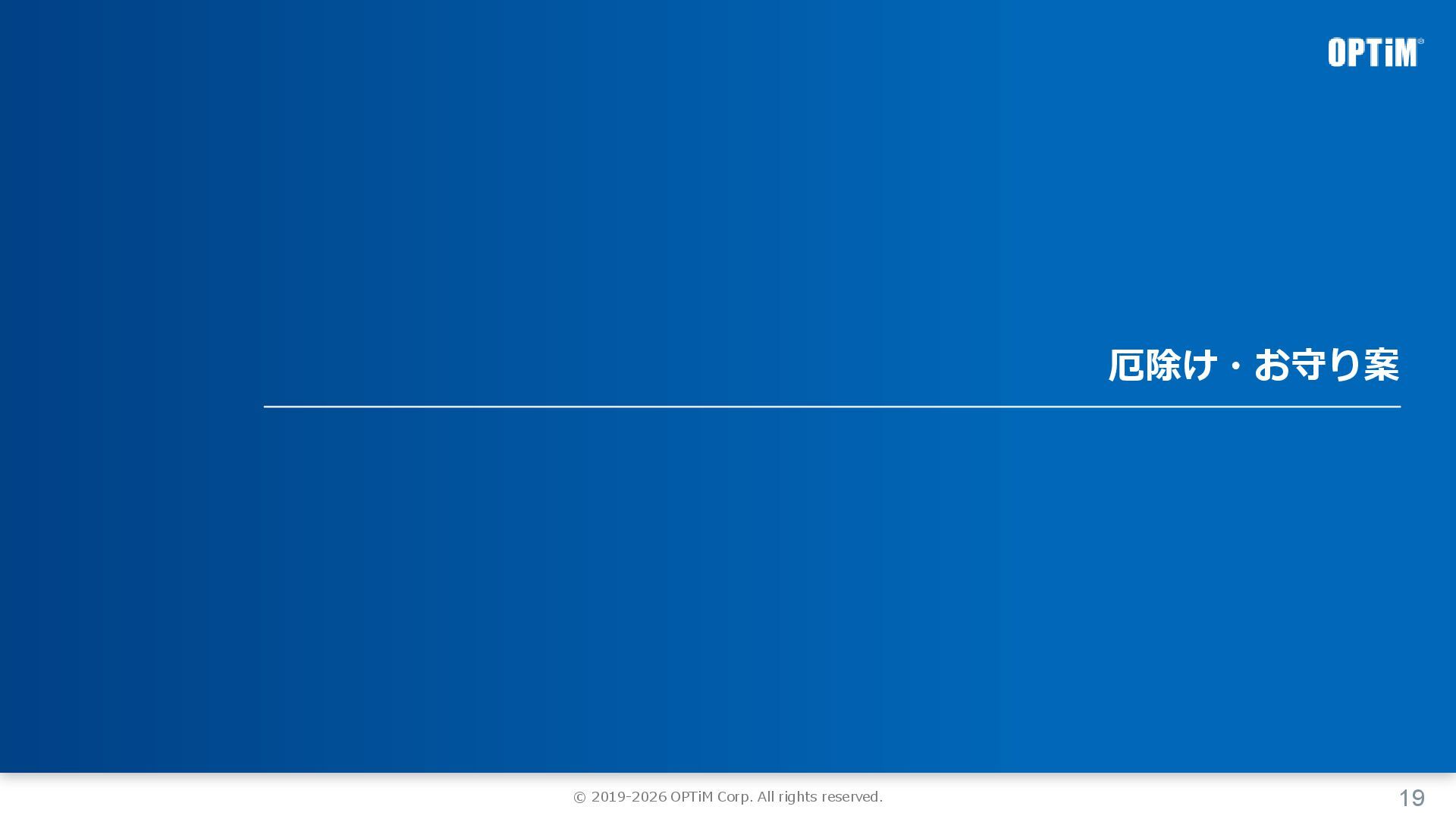 © 2019-2026 OPTiM Corp. All rights reserved. 19 厄除け・お守り案