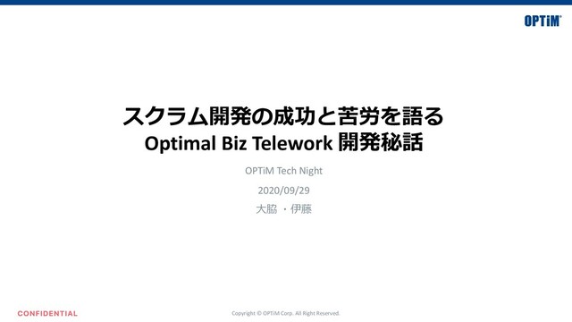 Telework 開発秘話 OPTiM Tech Night 2020/09/29 大脇 ・伊藤