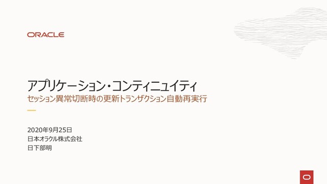 本スライドはOracle Databaseの高可用性機能の一つであるアプリケーション・コンティニュイティについて詳細に解説しています。
