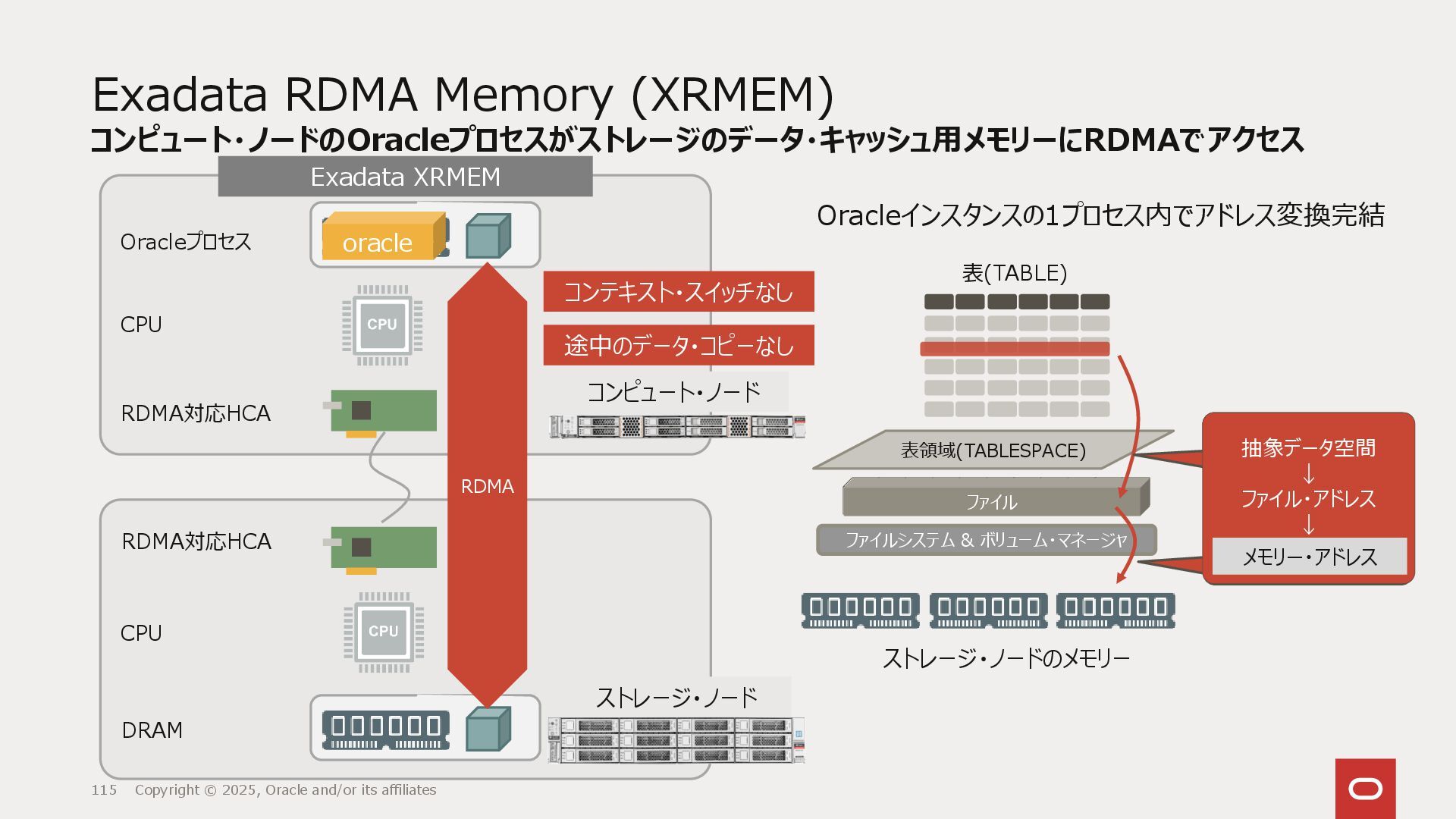 このセッションでは、Oracle Databaseカーネルのメモリー管理やI/Oサブシステムのうち、データベース・エンジンの根幹にかかわるデータのアドレッシング・アーキテクチャがどのように大胆な改造が行われてきたか、その歴史を振り返ります。