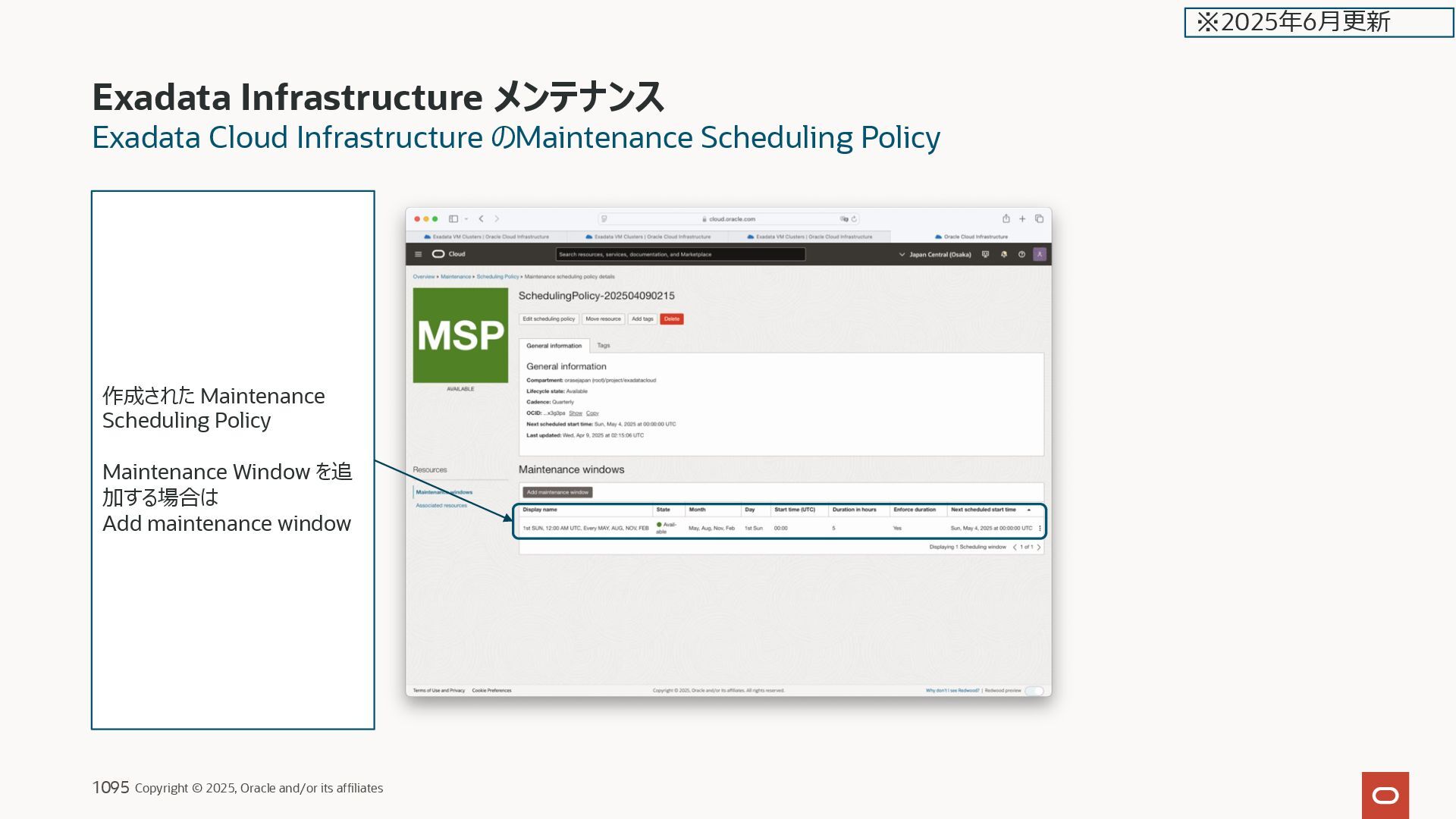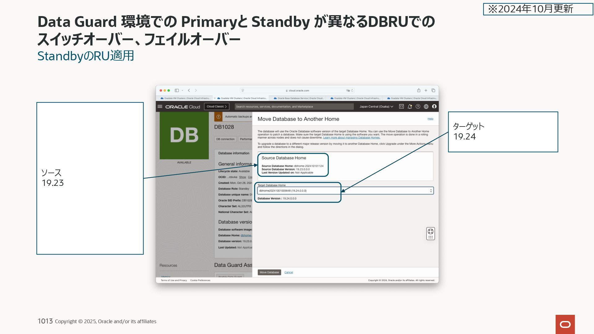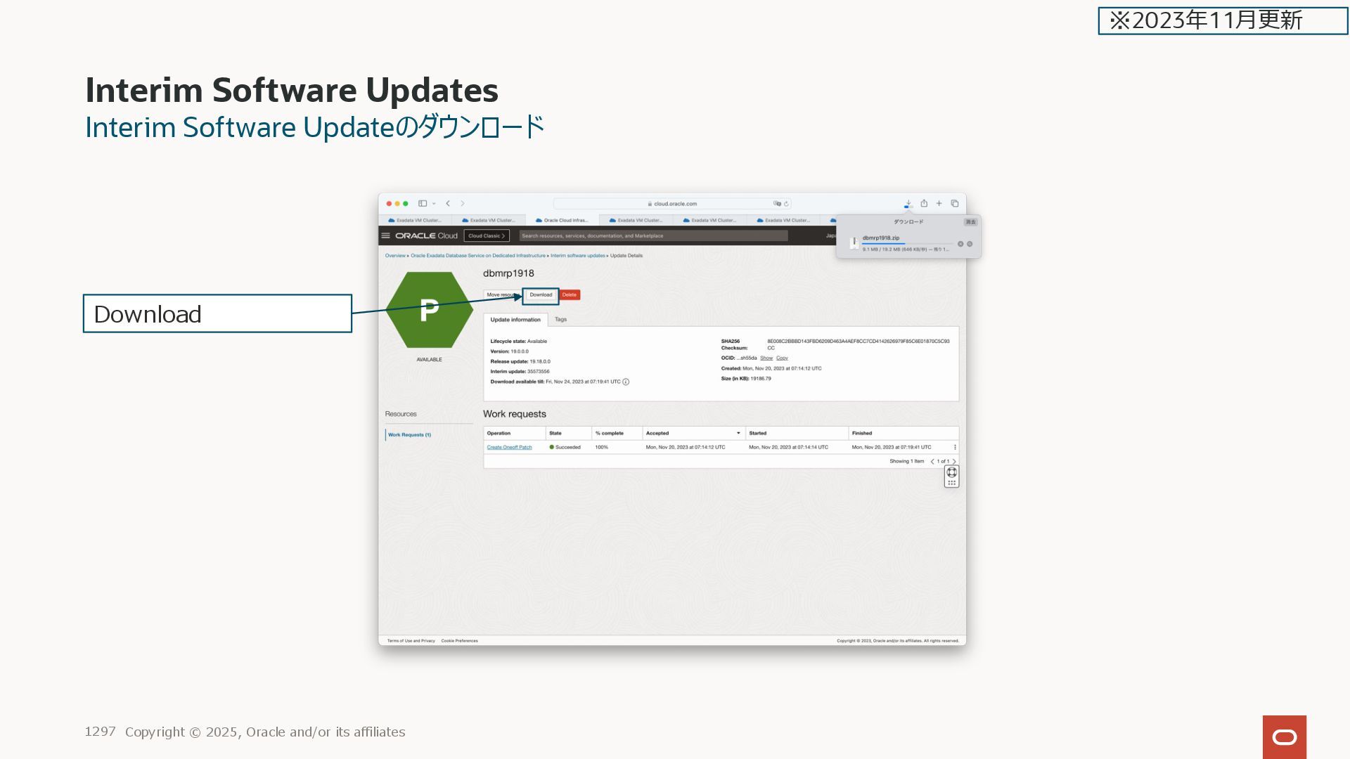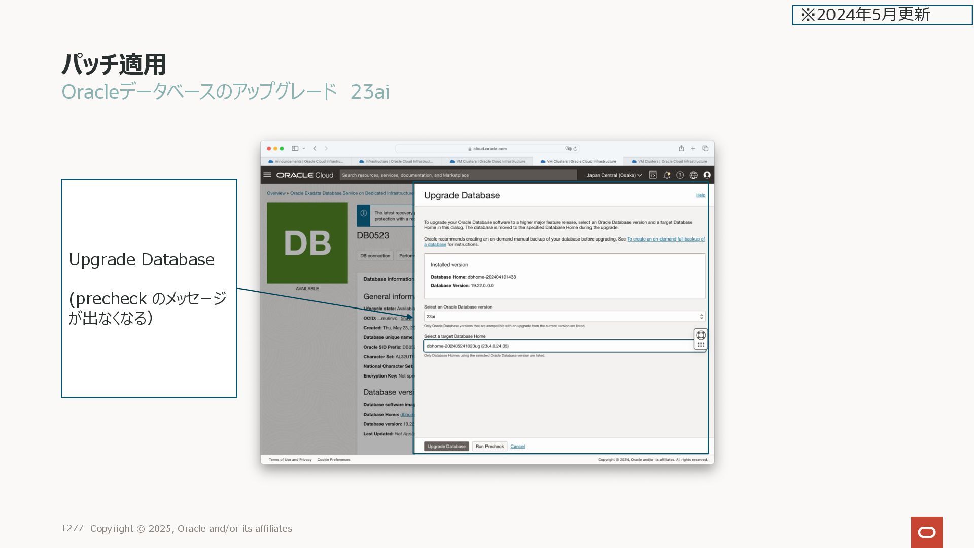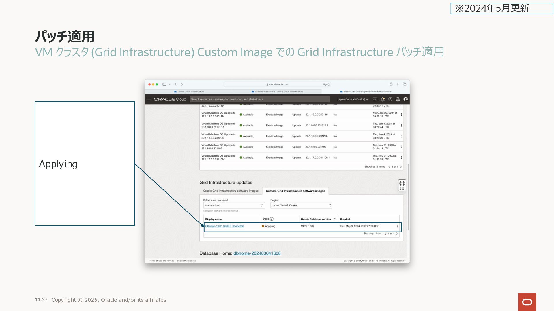 2025-04-03T01:31:51.131744+00:00 SQL> ALTER DISKGROUP DATAC2 DROP DISK 'DATAC2_CD_00_kix101117exdcl10', 'DATAC2_CD_01_kix101117exdcl10', 'DATAC2_CD_02_kix101117exdcl10', 'DATAC2_CD_03_kix101117exdcl10', 'DATAC2_CD_04_kix101117exdcl10', 'DATAC2_CD_05_kix101117exdcl10', 'DATAC2_CD_06_kix101117exdcl10', 'DATAC2_CD_07_kix101117exdcl10', 'DATAC2_CD_08_kix101117exdcl10', 'DATAC2_CD_09_kix101117exdcl10', 'DATAC2_CD_10_kix101117exdcl10', 'DATAC2_CD_11_kix101117exdcl10' REBALANCE POWER 4 略 SUCCESS: ALTER DISKGROUP RECOC2 DROP DISK 'RECOC2_CD_00_kix101117exdcl10', 'RECOC2_CD_01_kix101117exdcl10', 'RECOC2_CD_02_kix101117exdcl10', 'RECOC2_CD_03_kix101117exdcl10', 'RECOC2_CD_04_kix101117exdcl10', 'RECOC2_CD_05_kix101117exdcl10', 'RECOC2_CD_06_kix101117exdcl10', 'RECOC2_CD_07_kix101117exdcl10', 'RECOC2_CD_08_kix101117exdcl10', 'RECOC2_CD_09_kix101117exdcl10', 'RECOC2_CD_10_kix101117exdcl10', 'RECOC2_CD_11_kix101117exdcl10' REBALANCE POWER 4 NOTE: Attempting voting file refresh on diskgroup RECOC2 NOTE: Refresh completed on diskgroup RECOC2. No voting file found. 2025-04-03T01:32:19.466977+00:00 Exadata Infrastructure Copyright © 2025, Oracle and/or its affiliates 132 ※2025年4⽉更新
