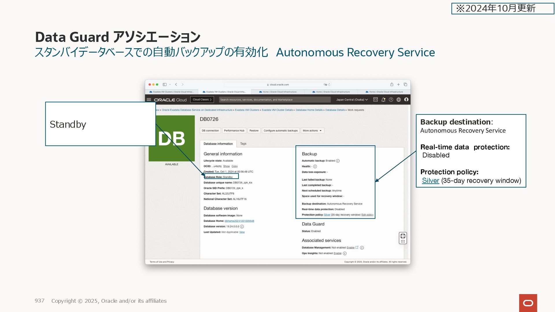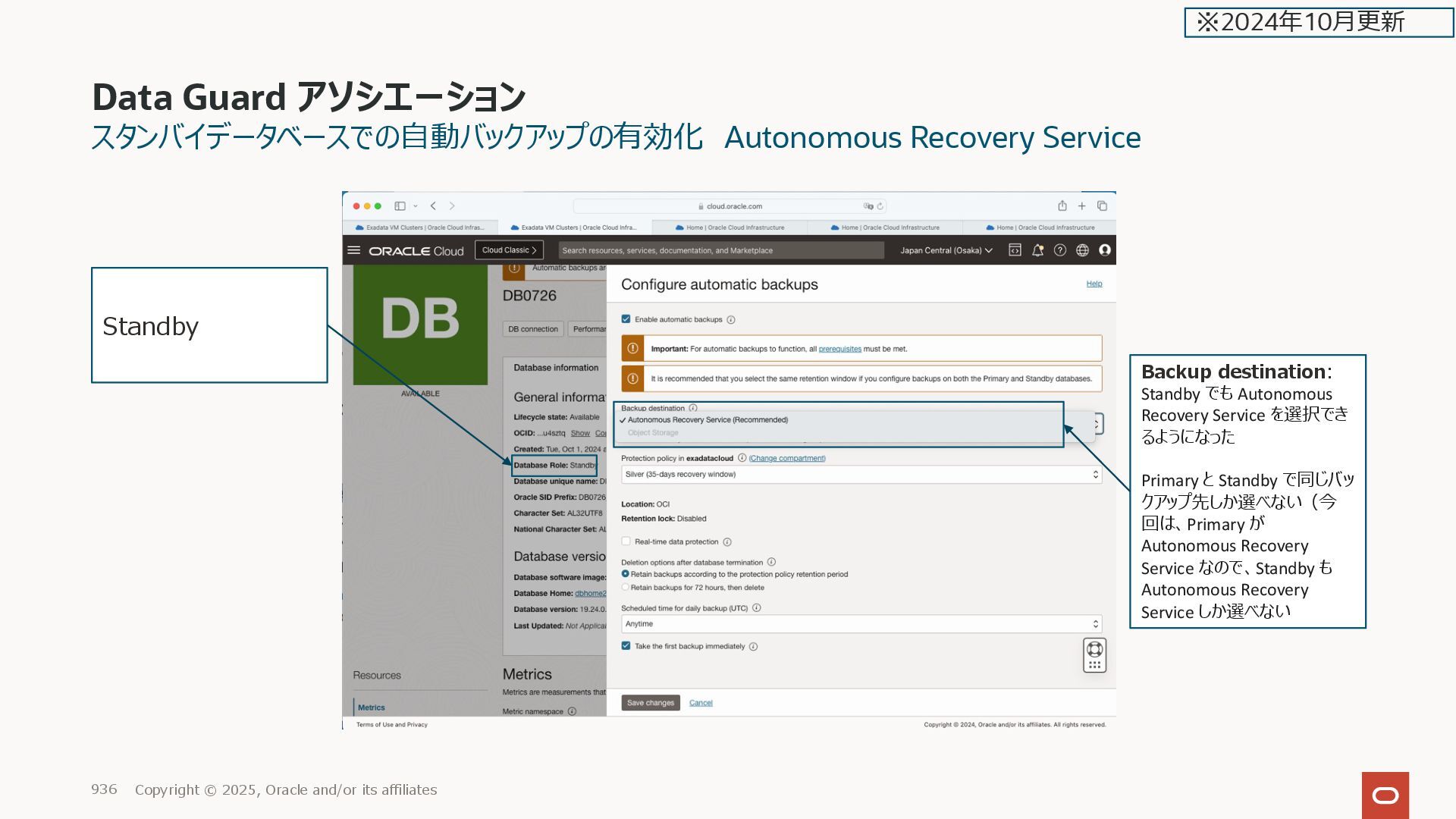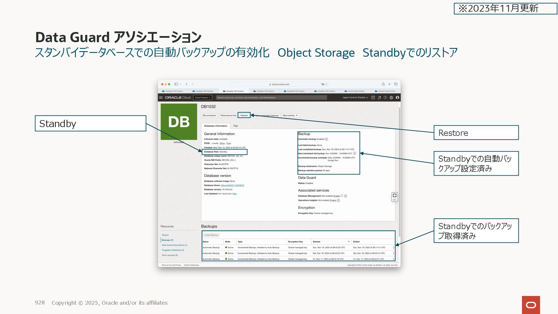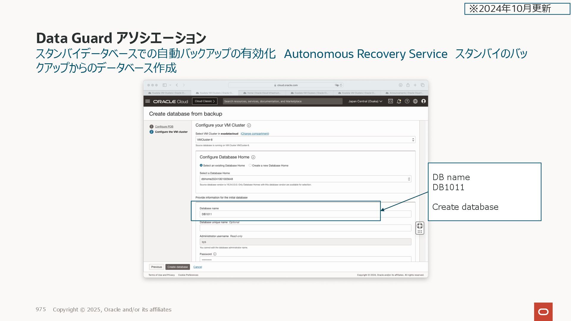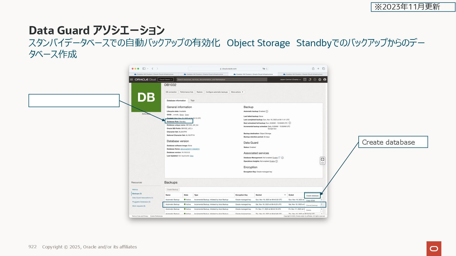 2025-04-03T01:31:51.131744+00:00 SQL> ALTER DISKGROUP DATAC2 DROP DISK 'DATAC2_CD_00_kix101117exdcl10', 'DATAC2_CD_01_kix101117exdcl10', 'DATAC2_CD_02_kix101117exdcl10', 'DATAC2_CD_03_kix101117exdcl10', 'DATAC2_CD_04_kix101117exdcl10', 'DATAC2_CD_05_kix101117exdcl10', 'DATAC2_CD_06_kix101117exdcl10', 'DATAC2_CD_07_kix101117exdcl10', 'DATAC2_CD_08_kix101117exdcl10', 'DATAC2_CD_09_kix101117exdcl10', 'DATAC2_CD_10_kix101117exdcl10', 'DATAC2_CD_11_kix101117exdcl10' REBALANCE POWER 4 略 SUCCESS: ALTER DISKGROUP RECOC2 DROP DISK 'RECOC2_CD_00_kix101117exdcl10', 'RECOC2_CD_01_kix101117exdcl10', 'RECOC2_CD_02_kix101117exdcl10', 'RECOC2_CD_03_kix101117exdcl10', 'RECOC2_CD_04_kix101117exdcl10', 'RECOC2_CD_05_kix101117exdcl10', 'RECOC2_CD_06_kix101117exdcl10', 'RECOC2_CD_07_kix101117exdcl10', 'RECOC2_CD_08_kix101117exdcl10', 'RECOC2_CD_09_kix101117exdcl10', 'RECOC2_CD_10_kix101117exdcl10', 'RECOC2_CD_11_kix101117exdcl10' REBALANCE POWER 4 NOTE: Attempting voting file refresh on diskgroup RECOC2 NOTE: Refresh completed on diskgroup RECOC2. No voting file found. 2025-04-03T01:32:19.466977+00:00 Exadata Infrastructure Copyright © 2025, Oracle and/or its affiliates 132 ※2025年4⽉更新