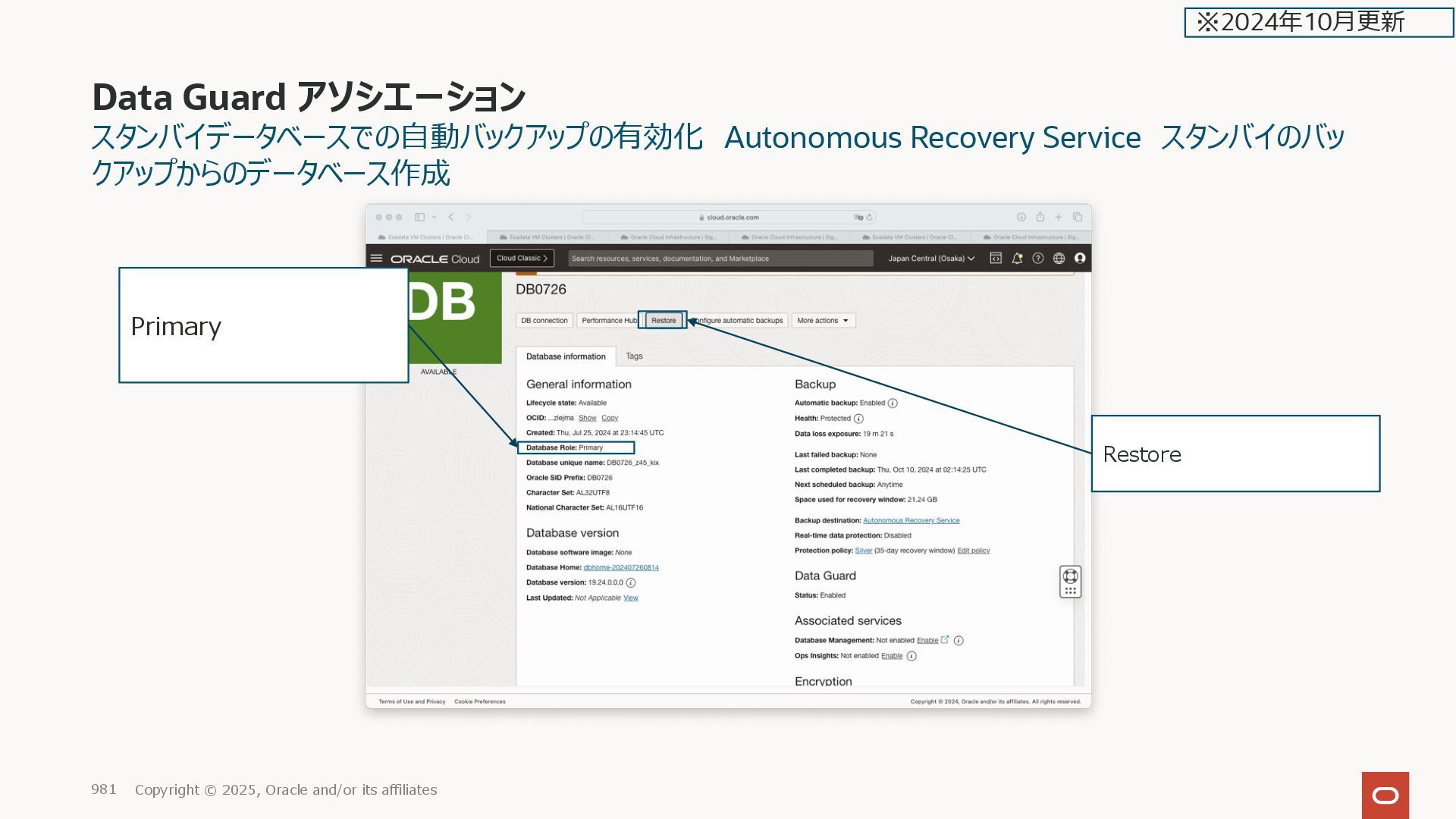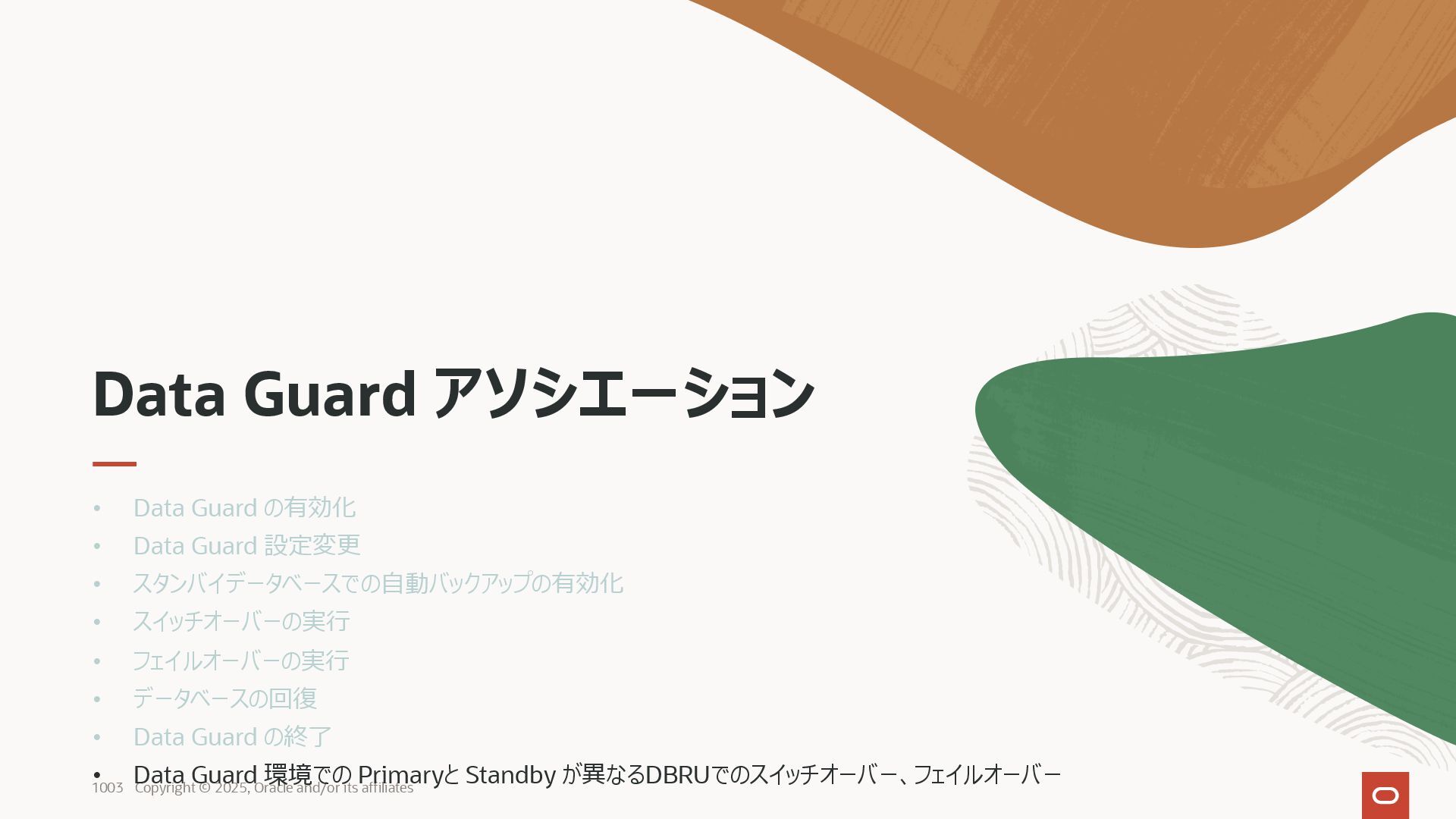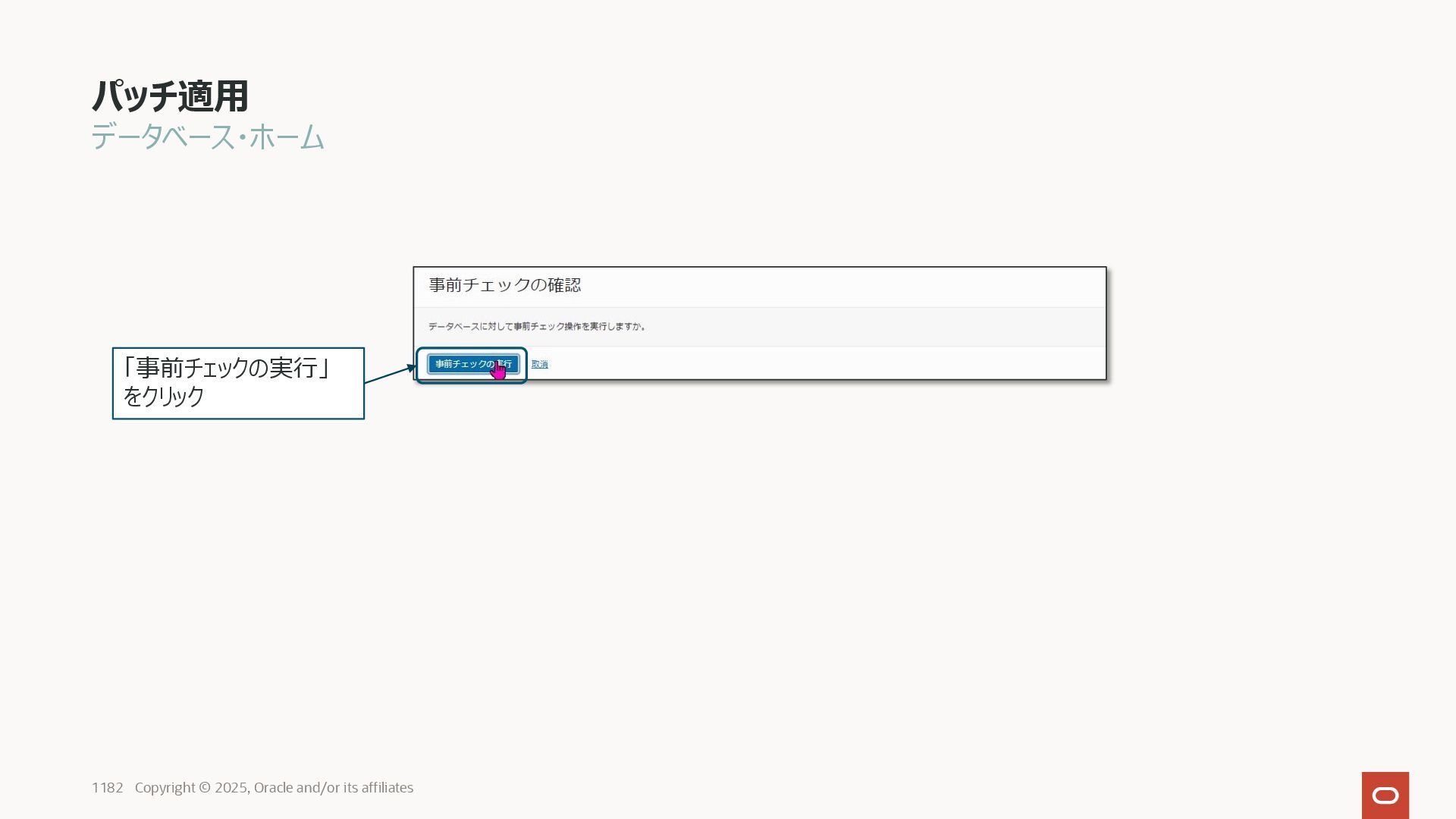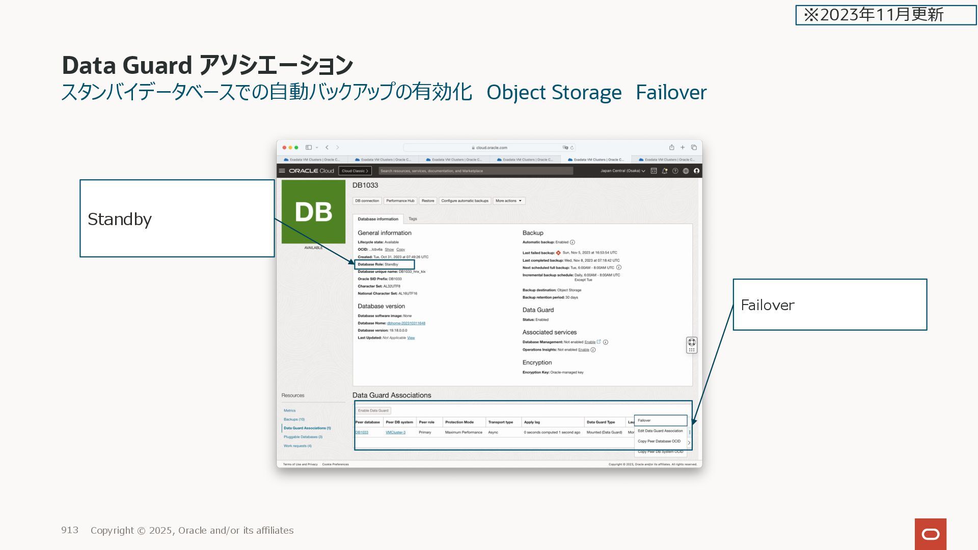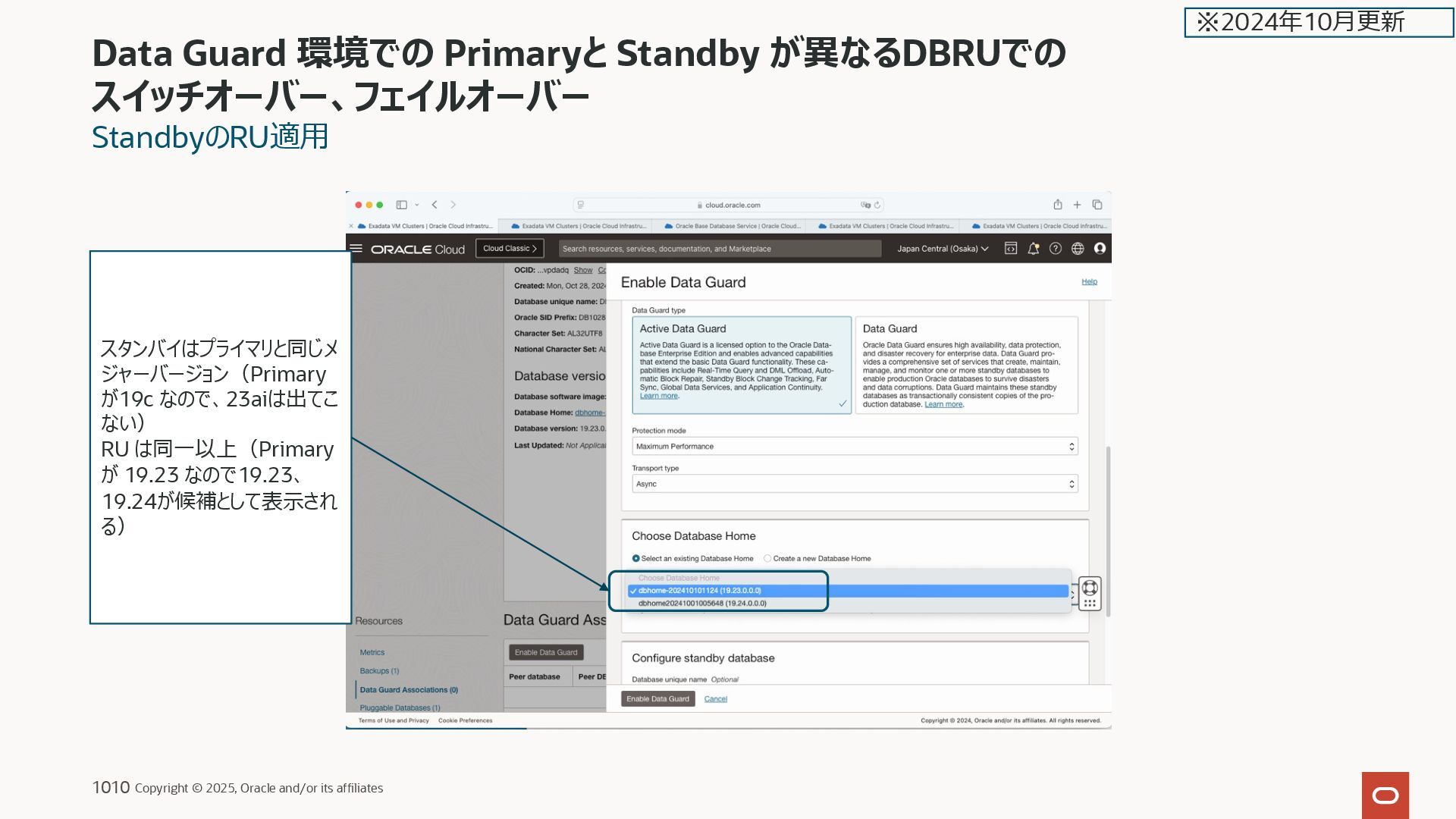 2025-04-03T01:31:51.131744+00:00 SQL> ALTER DISKGROUP DATAC2 DROP DISK 'DATAC2_CD_00_kix101117exdcl10', 'DATAC2_CD_01_kix101117exdcl10', 'DATAC2_CD_02_kix101117exdcl10', 'DATAC2_CD_03_kix101117exdcl10', 'DATAC2_CD_04_kix101117exdcl10', 'DATAC2_CD_05_kix101117exdcl10', 'DATAC2_CD_06_kix101117exdcl10', 'DATAC2_CD_07_kix101117exdcl10', 'DATAC2_CD_08_kix101117exdcl10', 'DATAC2_CD_09_kix101117exdcl10', 'DATAC2_CD_10_kix101117exdcl10', 'DATAC2_CD_11_kix101117exdcl10' REBALANCE POWER 4 略 SUCCESS: ALTER DISKGROUP RECOC2 DROP DISK 'RECOC2_CD_00_kix101117exdcl10', 'RECOC2_CD_01_kix101117exdcl10', 'RECOC2_CD_02_kix101117exdcl10', 'RECOC2_CD_03_kix101117exdcl10', 'RECOC2_CD_04_kix101117exdcl10', 'RECOC2_CD_05_kix101117exdcl10', 'RECOC2_CD_06_kix101117exdcl10', 'RECOC2_CD_07_kix101117exdcl10', 'RECOC2_CD_08_kix101117exdcl10', 'RECOC2_CD_09_kix101117exdcl10', 'RECOC2_CD_10_kix101117exdcl10', 'RECOC2_CD_11_kix101117exdcl10' REBALANCE POWER 4 NOTE: Attempting voting file refresh on diskgroup RECOC2 NOTE: Refresh completed on diskgroup RECOC2. No voting file found. 2025-04-03T01:32:19.466977+00:00 Exadata Infrastructure Copyright © 2025, Oracle and/or its affiliates 132 ※2025年4⽉更新