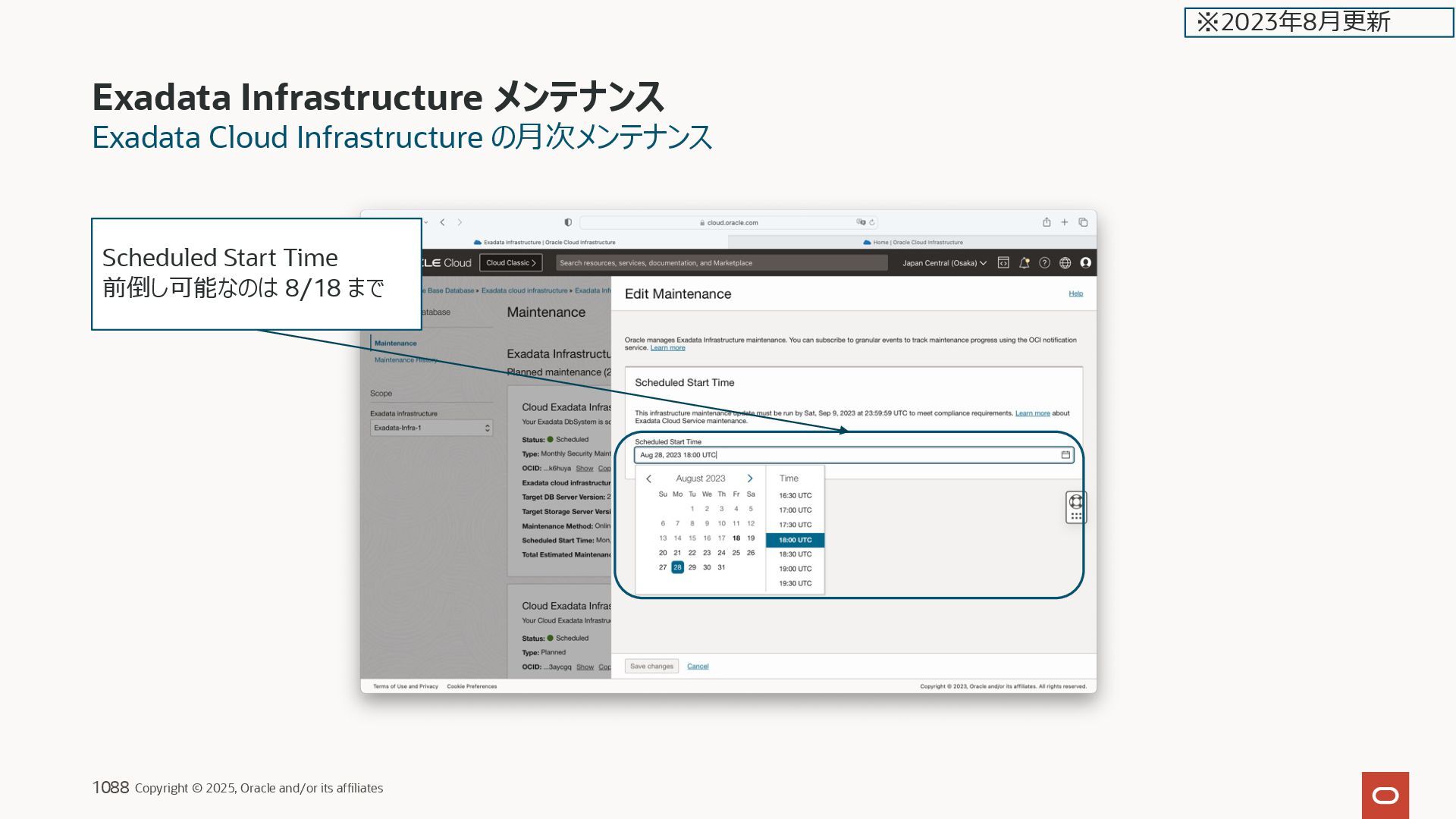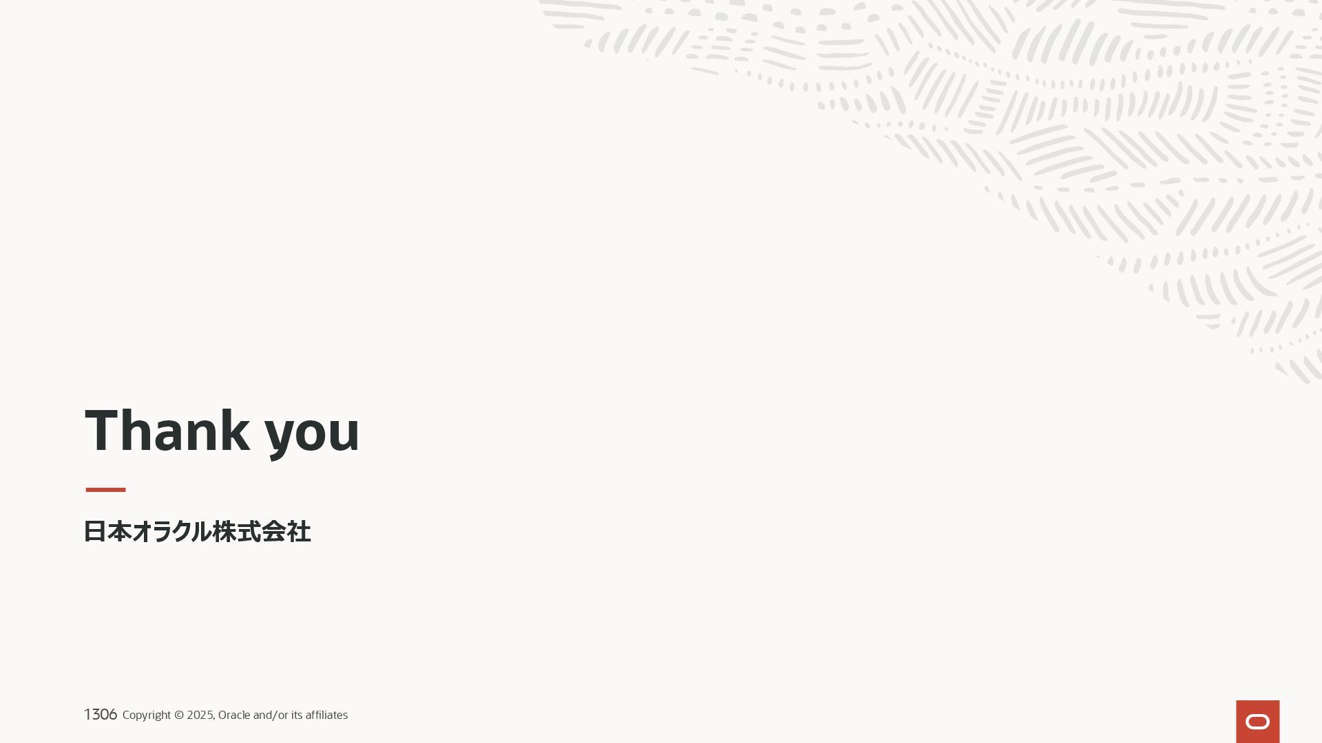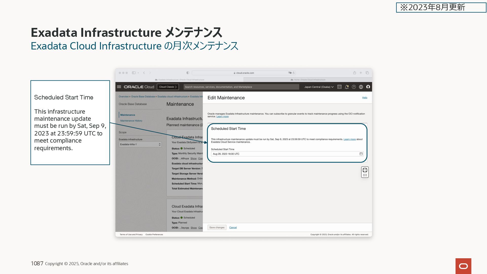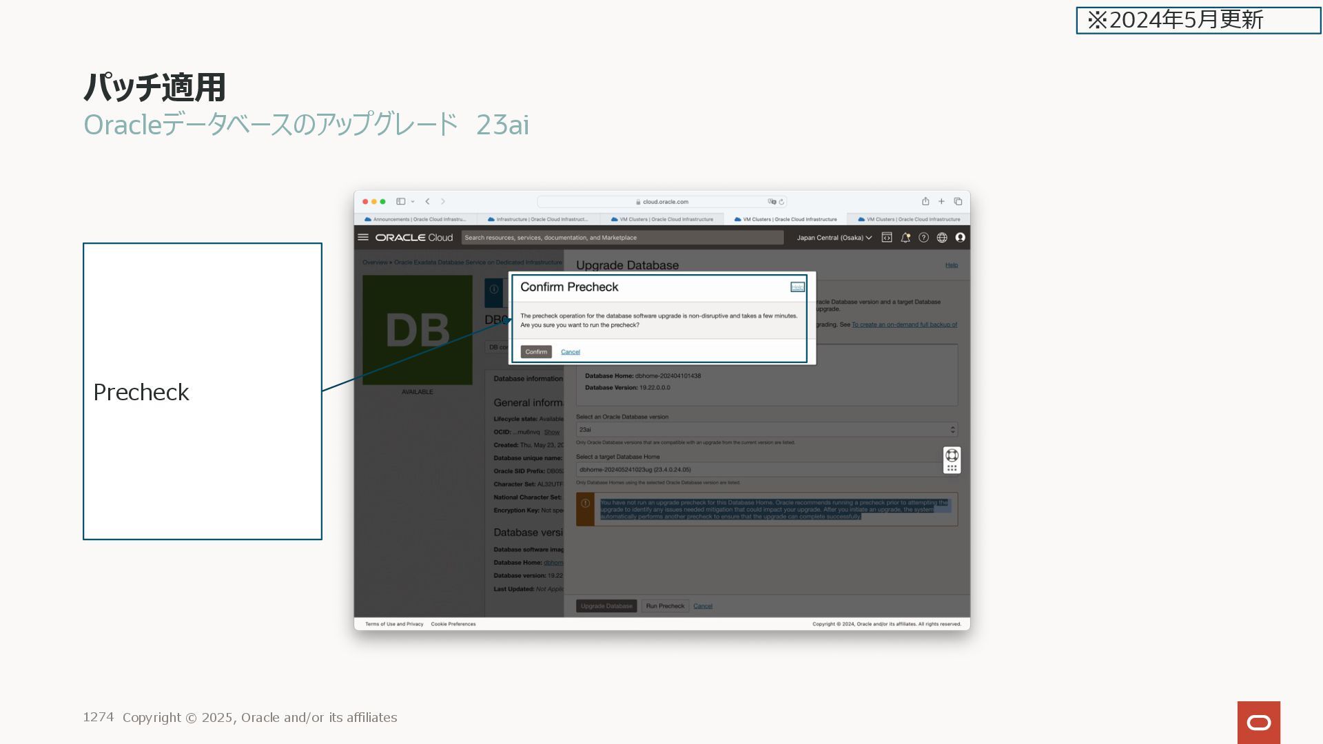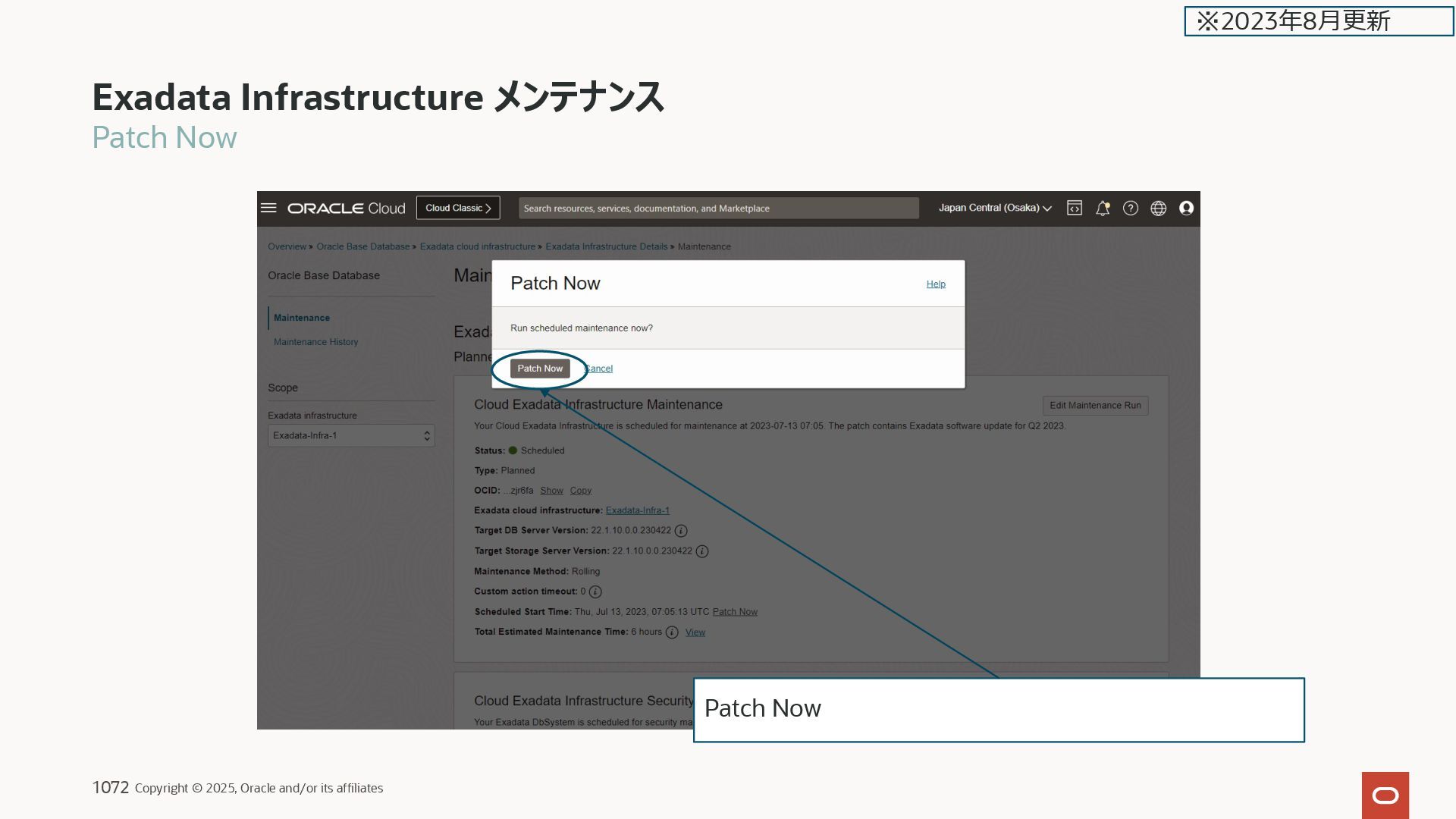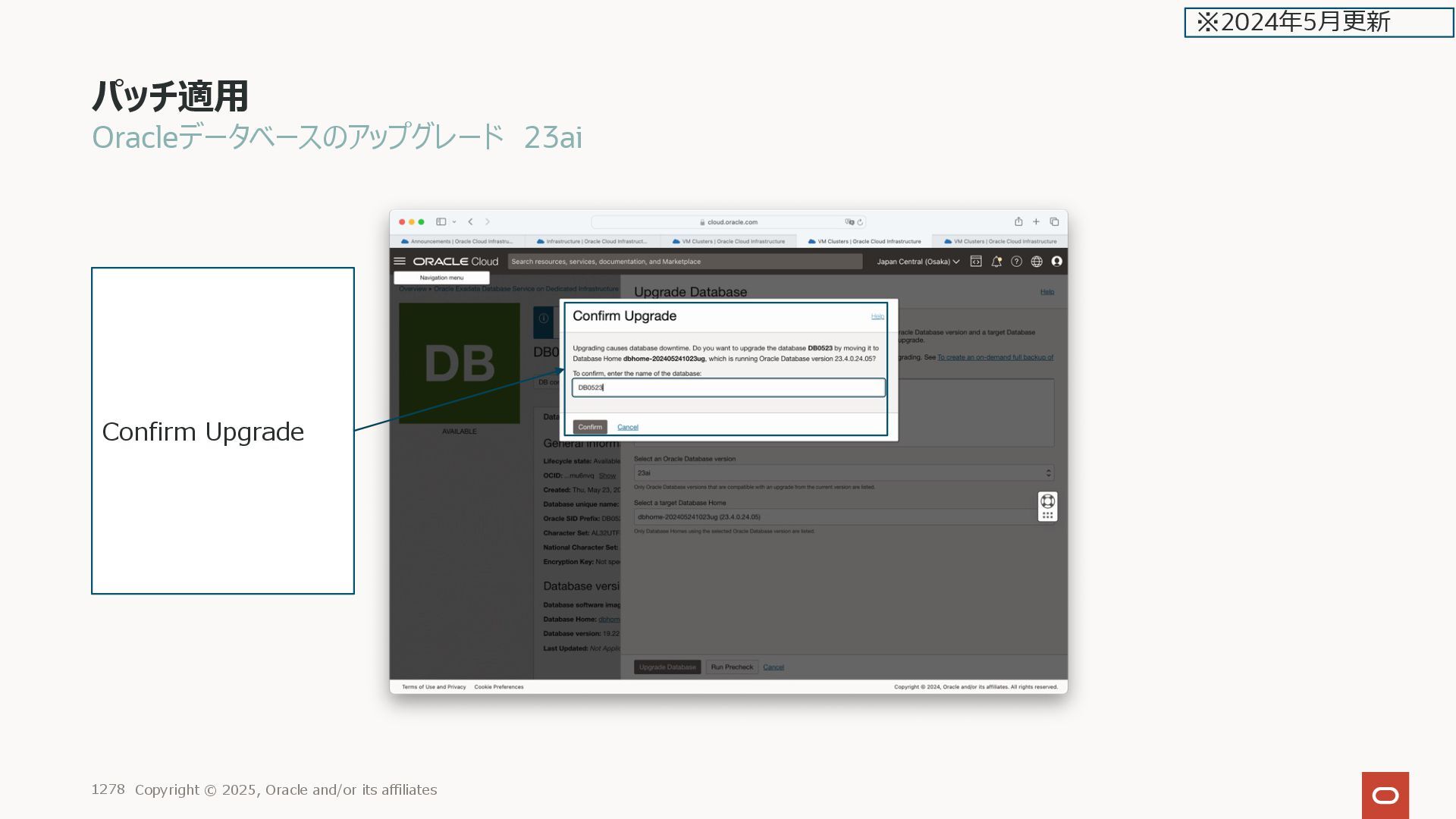 2025-04-03T01:31:51.131744+00:00 SQL> ALTER DISKGROUP DATAC2 DROP DISK 'DATAC2_CD_00_kix101117exdcl10', 'DATAC2_CD_01_kix101117exdcl10', 'DATAC2_CD_02_kix101117exdcl10', 'DATAC2_CD_03_kix101117exdcl10', 'DATAC2_CD_04_kix101117exdcl10', 'DATAC2_CD_05_kix101117exdcl10', 'DATAC2_CD_06_kix101117exdcl10', 'DATAC2_CD_07_kix101117exdcl10', 'DATAC2_CD_08_kix101117exdcl10', 'DATAC2_CD_09_kix101117exdcl10', 'DATAC2_CD_10_kix101117exdcl10', 'DATAC2_CD_11_kix101117exdcl10' REBALANCE POWER 4 略 SUCCESS: ALTER DISKGROUP RECOC2 DROP DISK 'RECOC2_CD_00_kix101117exdcl10', 'RECOC2_CD_01_kix101117exdcl10', 'RECOC2_CD_02_kix101117exdcl10', 'RECOC2_CD_03_kix101117exdcl10', 'RECOC2_CD_04_kix101117exdcl10', 'RECOC2_CD_05_kix101117exdcl10', 'RECOC2_CD_06_kix101117exdcl10', 'RECOC2_CD_07_kix101117exdcl10', 'RECOC2_CD_08_kix101117exdcl10', 'RECOC2_CD_09_kix101117exdcl10', 'RECOC2_CD_10_kix101117exdcl10', 'RECOC2_CD_11_kix101117exdcl10' REBALANCE POWER 4 NOTE: Attempting voting file refresh on diskgroup RECOC2 NOTE: Refresh completed on diskgroup RECOC2. No voting file found. 2025-04-03T01:32:19.466977+00:00 Exadata Infrastructure Copyright © 2025, Oracle and/or its affiliates 132 ※2025年4⽉更新