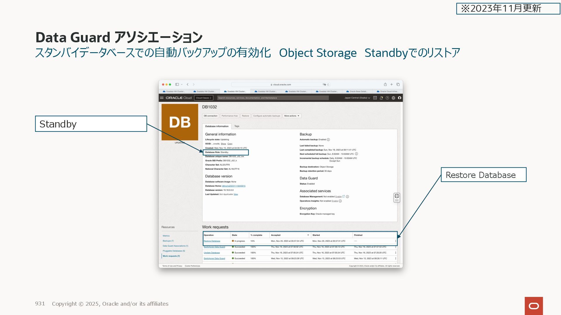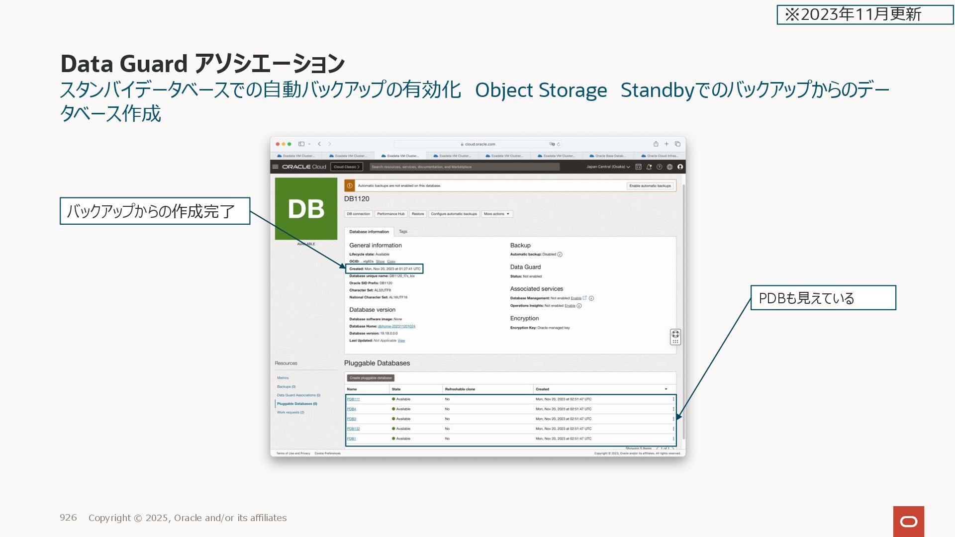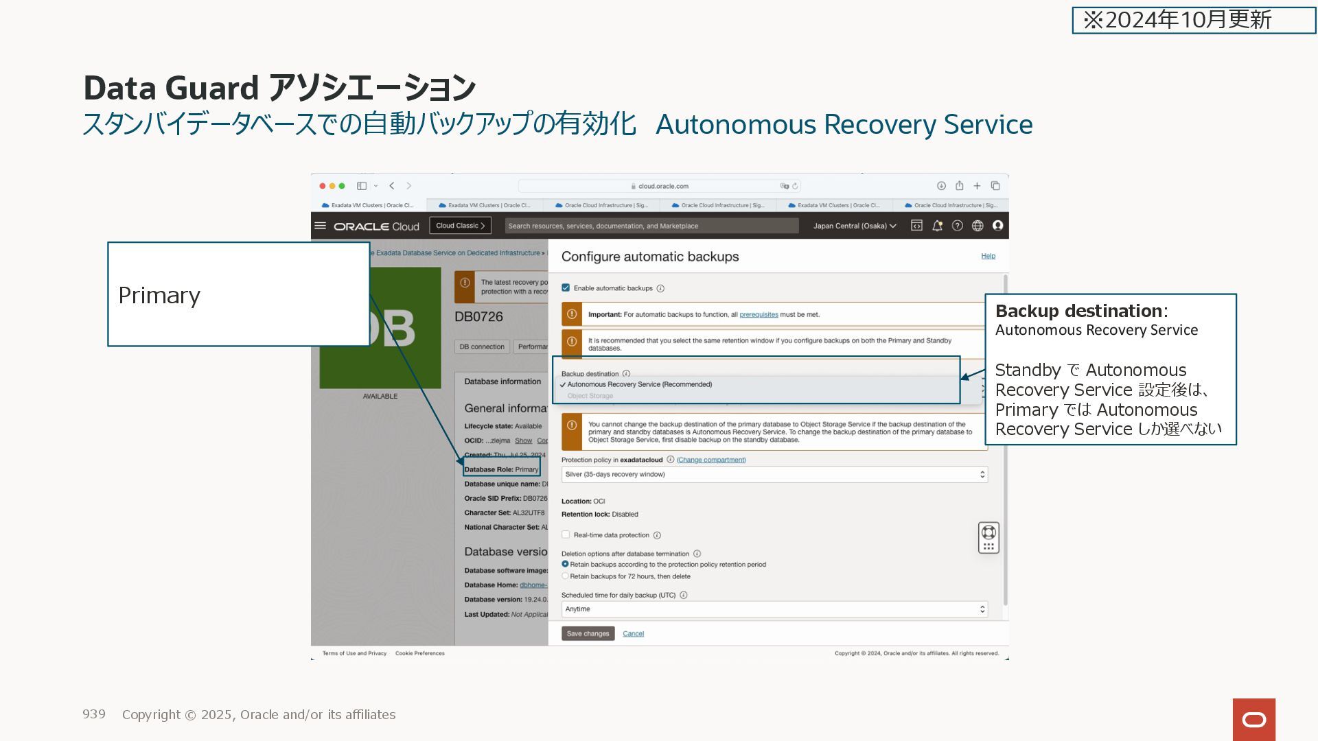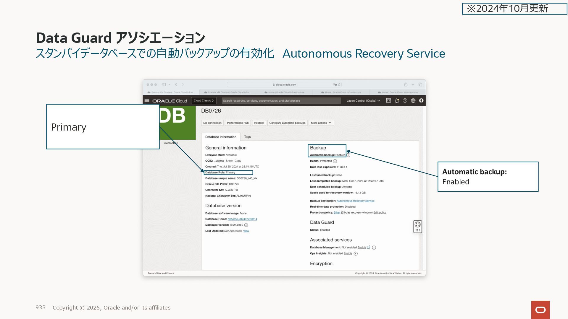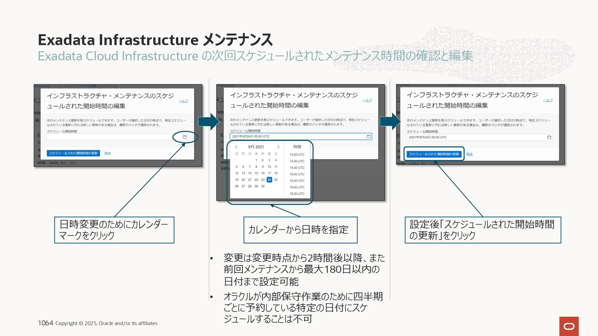 2025-04-03T01:31:51.131744+00:00 SQL> ALTER DISKGROUP DATAC2 DROP DISK 'DATAC2_CD_00_kix101117exdcl10', 'DATAC2_CD_01_kix101117exdcl10', 'DATAC2_CD_02_kix101117exdcl10', 'DATAC2_CD_03_kix101117exdcl10', 'DATAC2_CD_04_kix101117exdcl10', 'DATAC2_CD_05_kix101117exdcl10', 'DATAC2_CD_06_kix101117exdcl10', 'DATAC2_CD_07_kix101117exdcl10', 'DATAC2_CD_08_kix101117exdcl10', 'DATAC2_CD_09_kix101117exdcl10', 'DATAC2_CD_10_kix101117exdcl10', 'DATAC2_CD_11_kix101117exdcl10' REBALANCE POWER 4 略 SUCCESS: ALTER DISKGROUP RECOC2 DROP DISK 'RECOC2_CD_00_kix101117exdcl10', 'RECOC2_CD_01_kix101117exdcl10', 'RECOC2_CD_02_kix101117exdcl10', 'RECOC2_CD_03_kix101117exdcl10', 'RECOC2_CD_04_kix101117exdcl10', 'RECOC2_CD_05_kix101117exdcl10', 'RECOC2_CD_06_kix101117exdcl10', 'RECOC2_CD_07_kix101117exdcl10', 'RECOC2_CD_08_kix101117exdcl10', 'RECOC2_CD_09_kix101117exdcl10', 'RECOC2_CD_10_kix101117exdcl10', 'RECOC2_CD_11_kix101117exdcl10' REBALANCE POWER 4 NOTE: Attempting voting file refresh on diskgroup RECOC2 NOTE: Refresh completed on diskgroup RECOC2. No voting file found. 2025-04-03T01:32:19.466977+00:00 Exadata Infrastructure Copyright © 2025, Oracle and/or its affiliates 132 ※2025年4⽉更新
