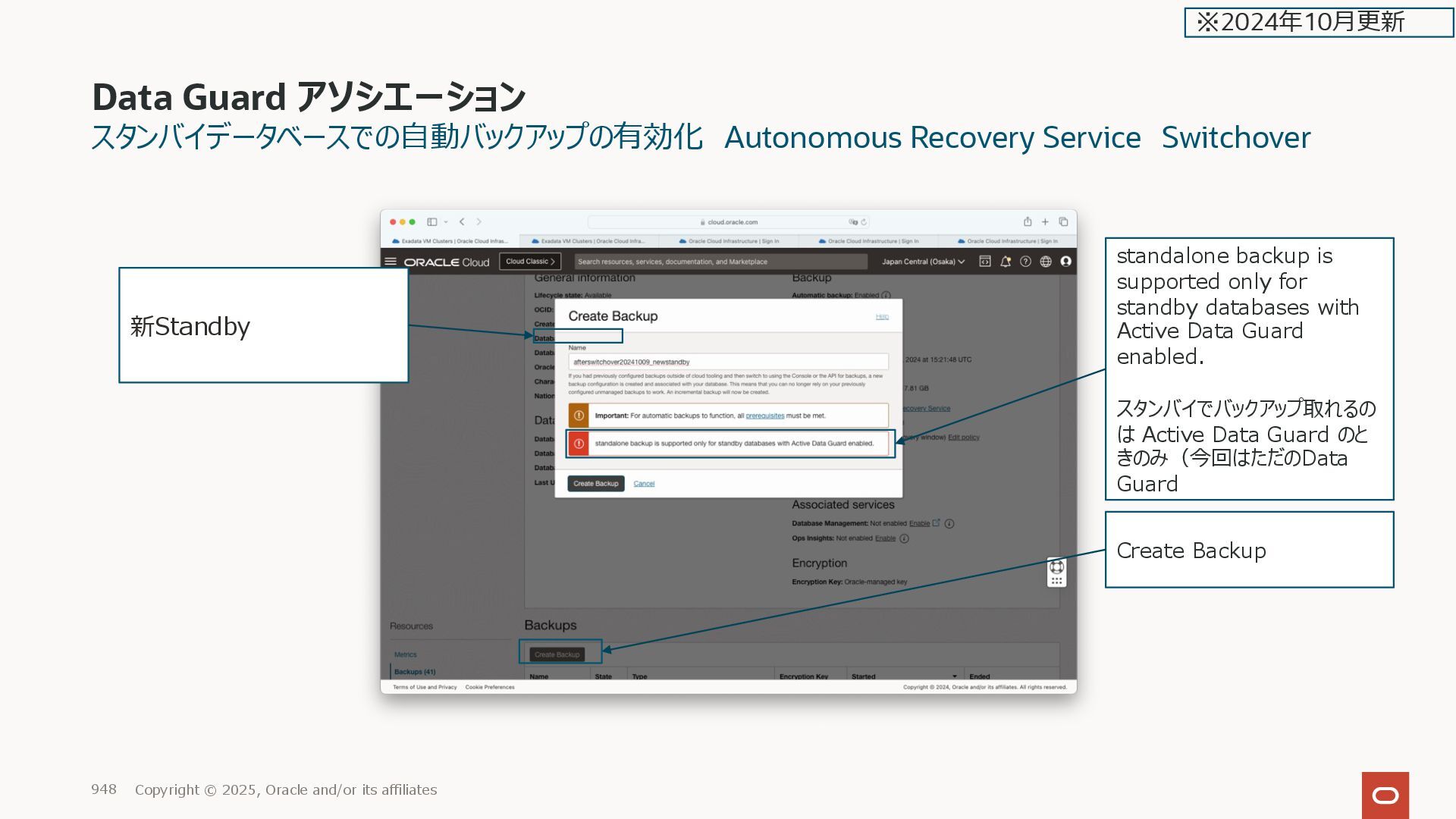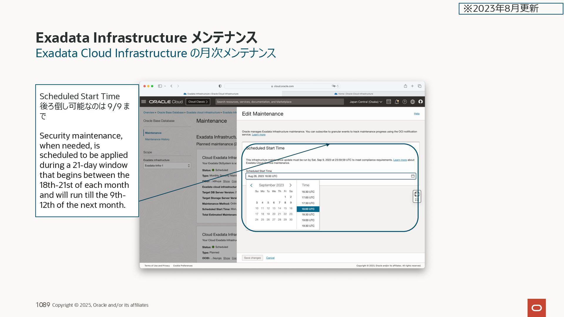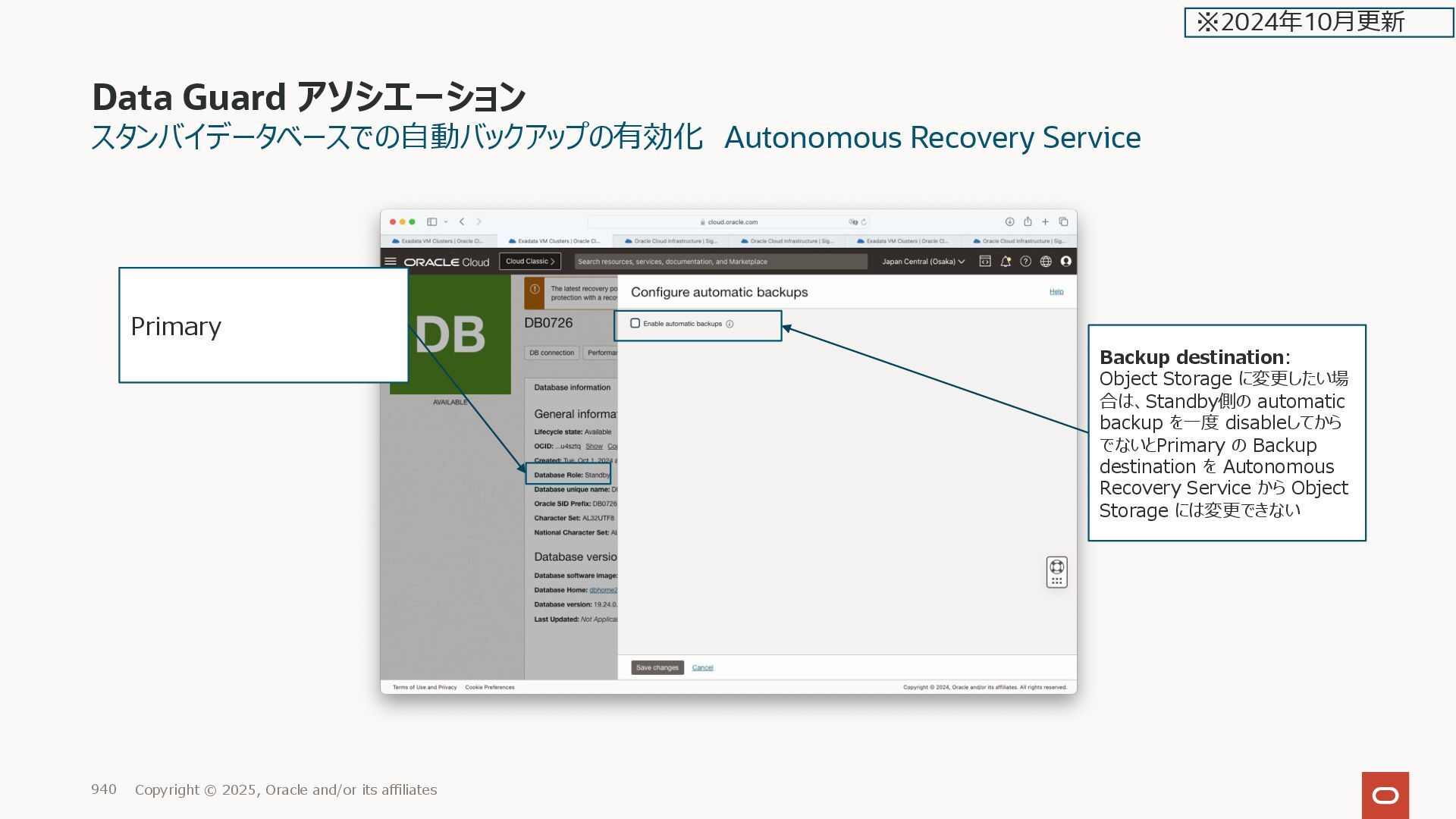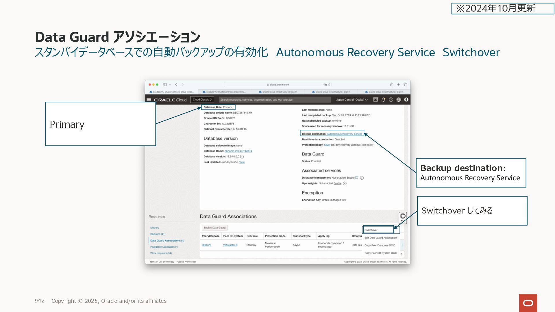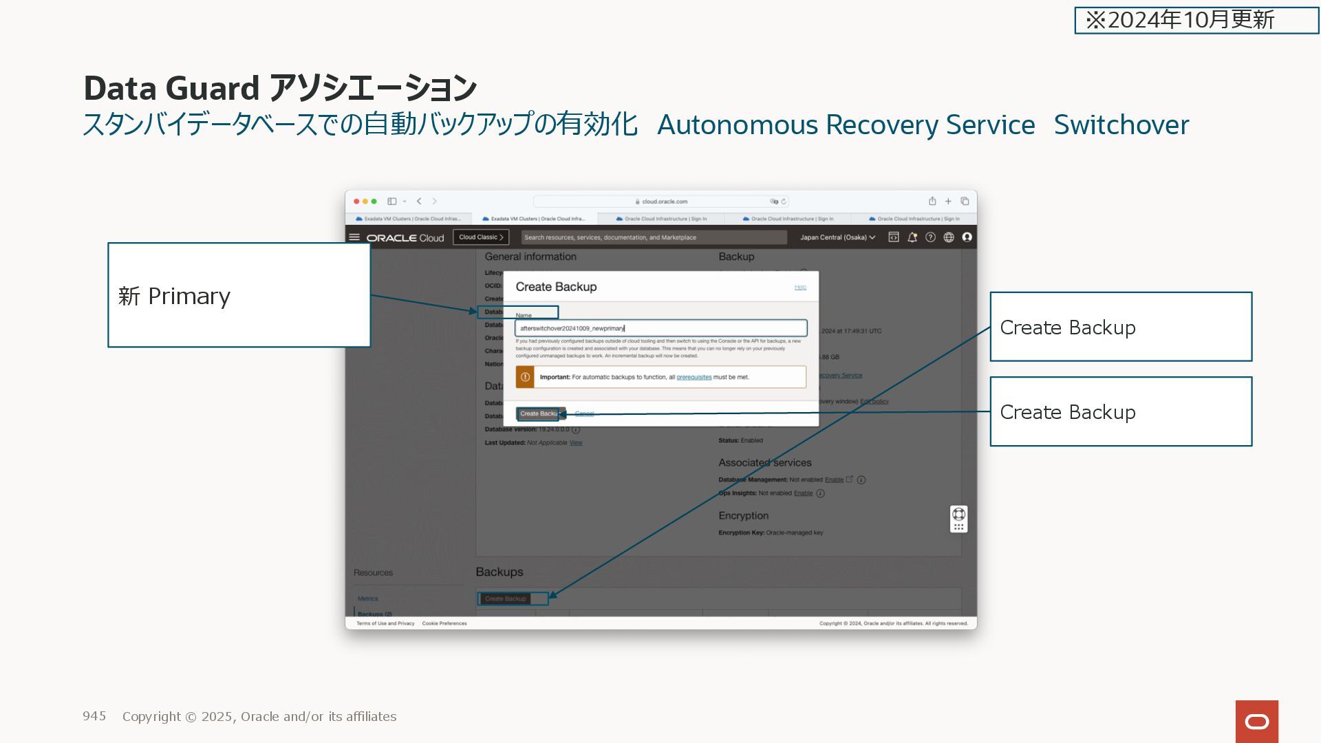 2025-04-03T01:31:51.131744+00:00 SQL> ALTER DISKGROUP DATAC2 DROP DISK 'DATAC2_CD_00_kix101117exdcl10', 'DATAC2_CD_01_kix101117exdcl10', 'DATAC2_CD_02_kix101117exdcl10', 'DATAC2_CD_03_kix101117exdcl10', 'DATAC2_CD_04_kix101117exdcl10', 'DATAC2_CD_05_kix101117exdcl10', 'DATAC2_CD_06_kix101117exdcl10', 'DATAC2_CD_07_kix101117exdcl10', 'DATAC2_CD_08_kix101117exdcl10', 'DATAC2_CD_09_kix101117exdcl10', 'DATAC2_CD_10_kix101117exdcl10', 'DATAC2_CD_11_kix101117exdcl10' REBALANCE POWER 4 略 SUCCESS: ALTER DISKGROUP RECOC2 DROP DISK 'RECOC2_CD_00_kix101117exdcl10', 'RECOC2_CD_01_kix101117exdcl10', 'RECOC2_CD_02_kix101117exdcl10', 'RECOC2_CD_03_kix101117exdcl10', 'RECOC2_CD_04_kix101117exdcl10', 'RECOC2_CD_05_kix101117exdcl10', 'RECOC2_CD_06_kix101117exdcl10', 'RECOC2_CD_07_kix101117exdcl10', 'RECOC2_CD_08_kix101117exdcl10', 'RECOC2_CD_09_kix101117exdcl10', 'RECOC2_CD_10_kix101117exdcl10', 'RECOC2_CD_11_kix101117exdcl10' REBALANCE POWER 4 NOTE: Attempting voting file refresh on diskgroup RECOC2 NOTE: Refresh completed on diskgroup RECOC2. No voting file found. 2025-04-03T01:32:19.466977+00:00 Exadata Infrastructure Copyright © 2025, Oracle and/or its affiliates 132 ※2025年4⽉更新