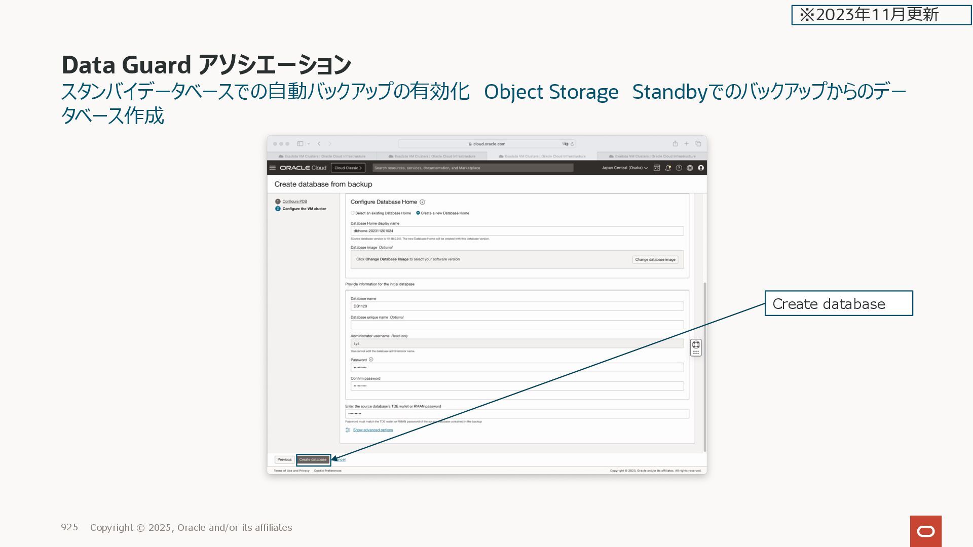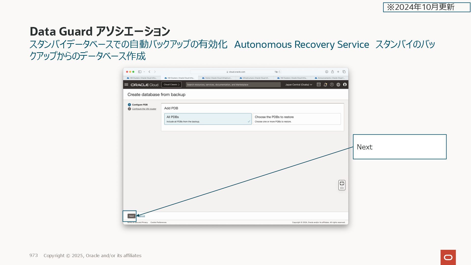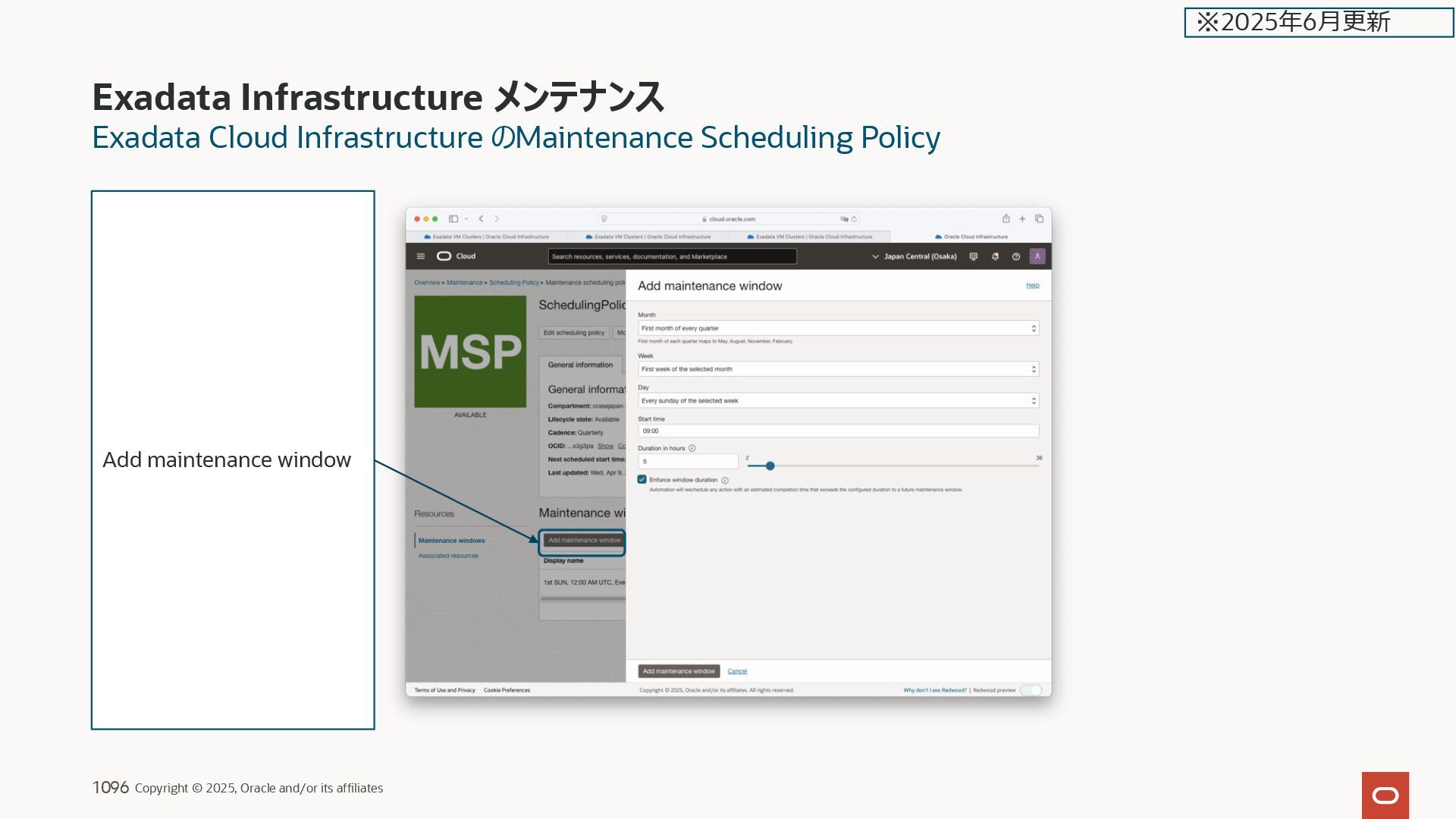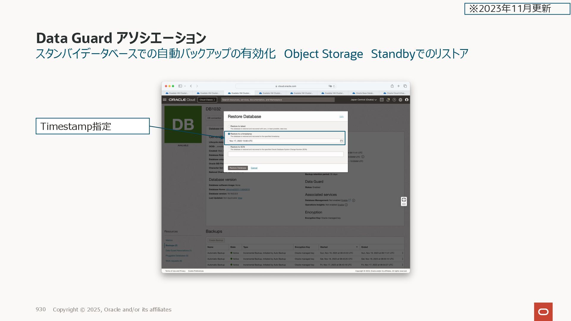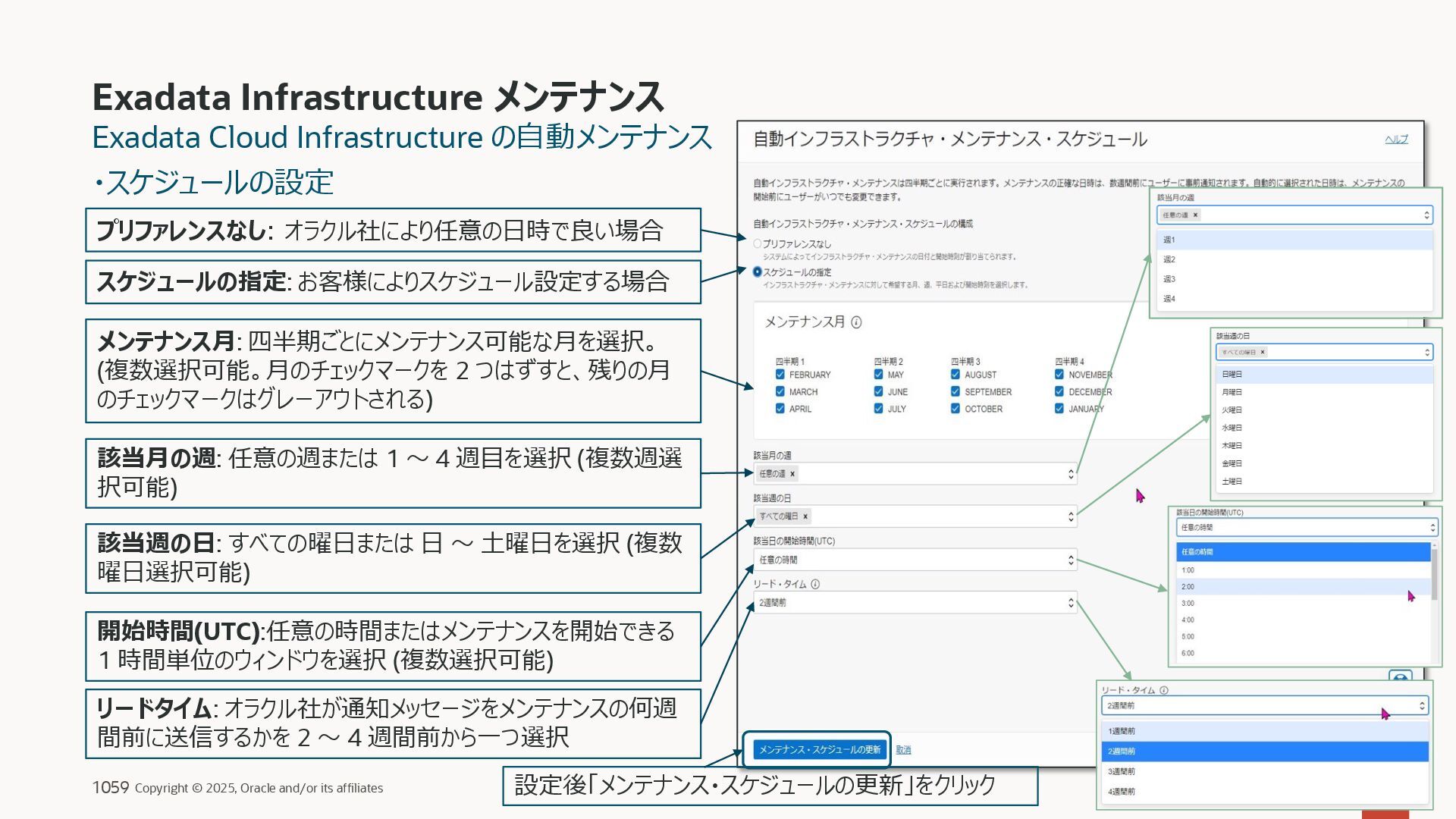 2025-04-03T01:31:51.131744+00:00 SQL> ALTER DISKGROUP DATAC2 DROP DISK 'DATAC2_CD_00_kix101117exdcl10', 'DATAC2_CD_01_kix101117exdcl10', 'DATAC2_CD_02_kix101117exdcl10', 'DATAC2_CD_03_kix101117exdcl10', 'DATAC2_CD_04_kix101117exdcl10', 'DATAC2_CD_05_kix101117exdcl10', 'DATAC2_CD_06_kix101117exdcl10', 'DATAC2_CD_07_kix101117exdcl10', 'DATAC2_CD_08_kix101117exdcl10', 'DATAC2_CD_09_kix101117exdcl10', 'DATAC2_CD_10_kix101117exdcl10', 'DATAC2_CD_11_kix101117exdcl10' REBALANCE POWER 4 略 SUCCESS: ALTER DISKGROUP RECOC2 DROP DISK 'RECOC2_CD_00_kix101117exdcl10', 'RECOC2_CD_01_kix101117exdcl10', 'RECOC2_CD_02_kix101117exdcl10', 'RECOC2_CD_03_kix101117exdcl10', 'RECOC2_CD_04_kix101117exdcl10', 'RECOC2_CD_05_kix101117exdcl10', 'RECOC2_CD_06_kix101117exdcl10', 'RECOC2_CD_07_kix101117exdcl10', 'RECOC2_CD_08_kix101117exdcl10', 'RECOC2_CD_09_kix101117exdcl10', 'RECOC2_CD_10_kix101117exdcl10', 'RECOC2_CD_11_kix101117exdcl10' REBALANCE POWER 4 NOTE: Attempting voting file refresh on diskgroup RECOC2 NOTE: Refresh completed on diskgroup RECOC2. No voting file found. 2025-04-03T01:32:19.466977+00:00 Exadata Infrastructure Copyright © 2025, Oracle and/or its affiliates 132 ※2025年4⽉更新