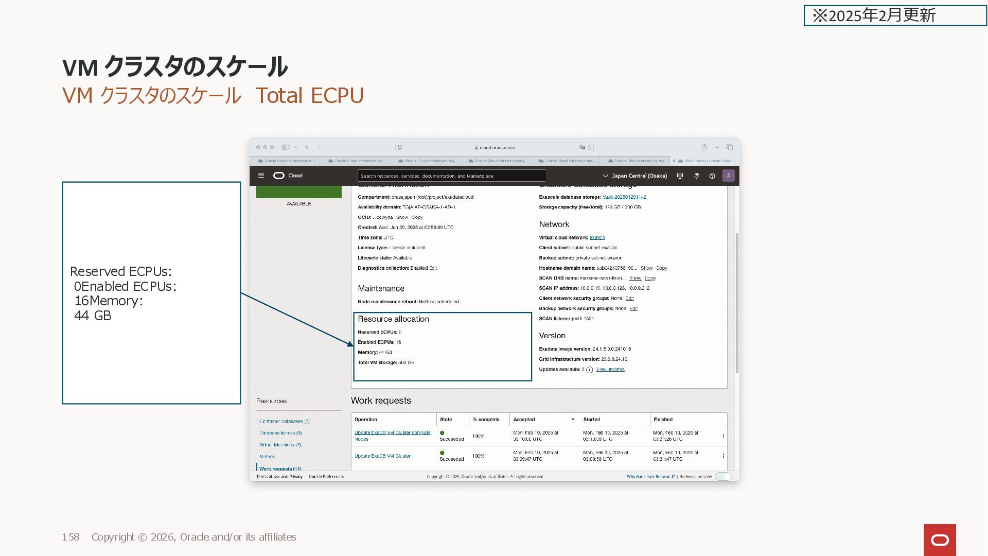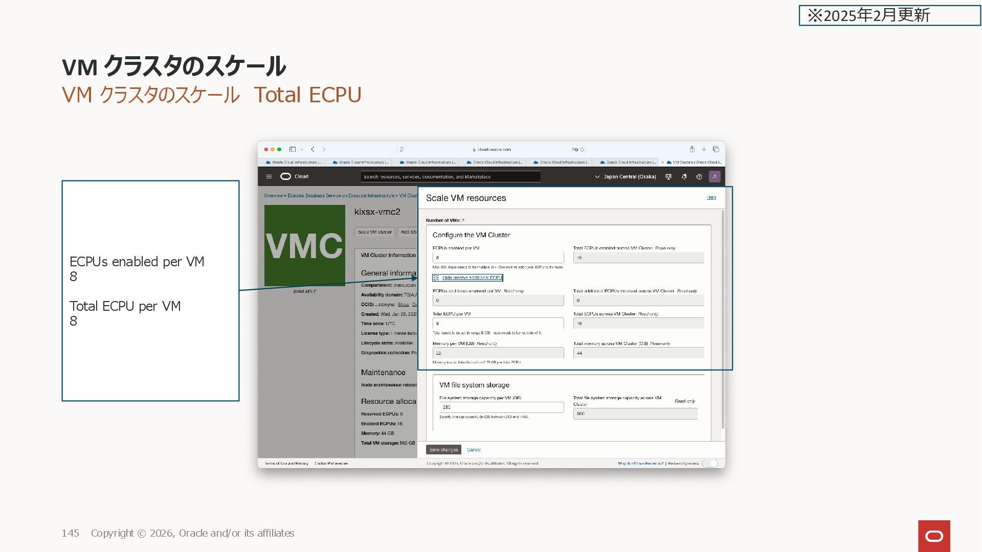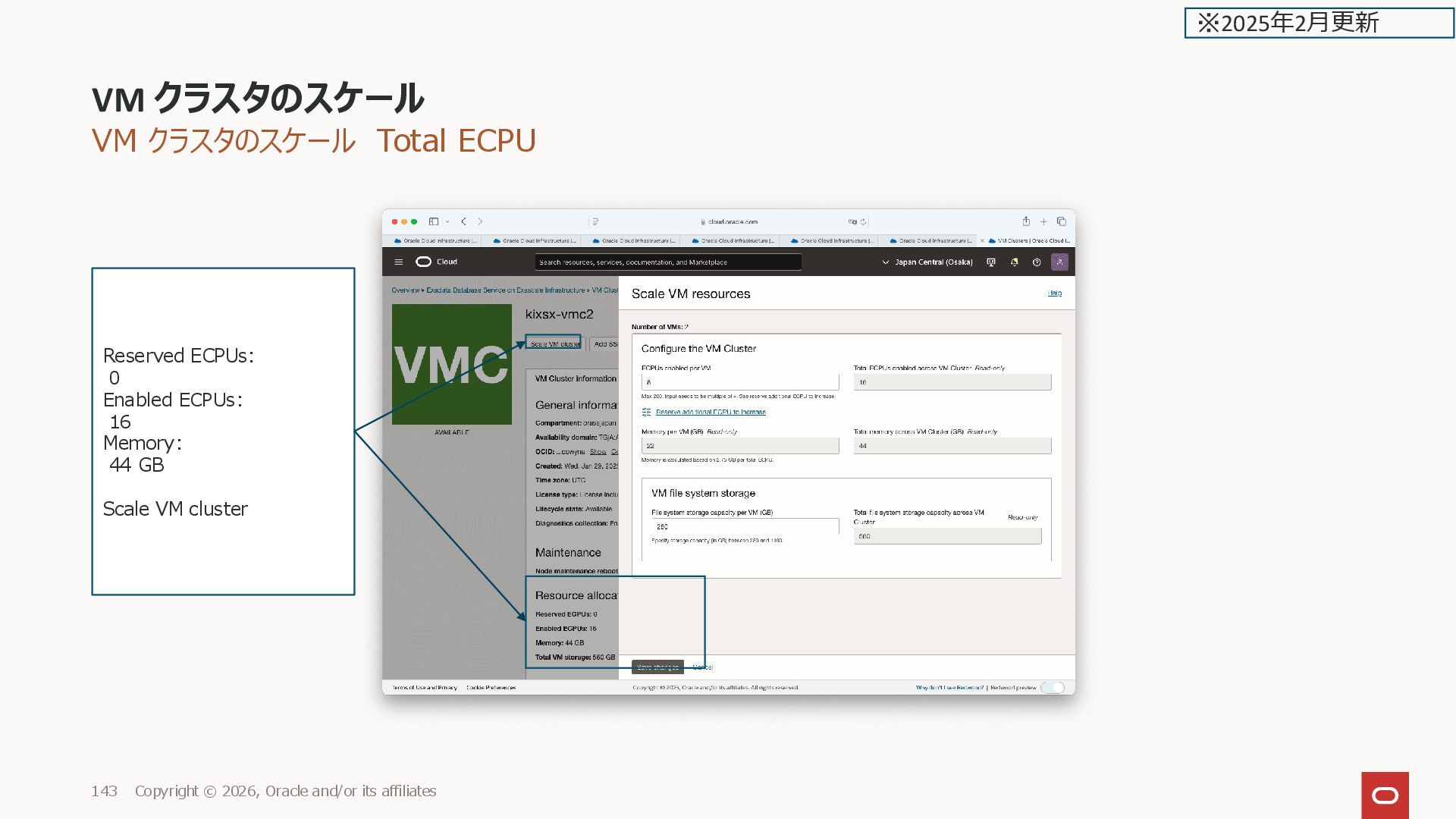 and/or its affiliates 143 Reserved ECPUs: 0 Enabled ECPUs: 16 Memory: 44 GB Scale VM cluster ※2025年2月更新