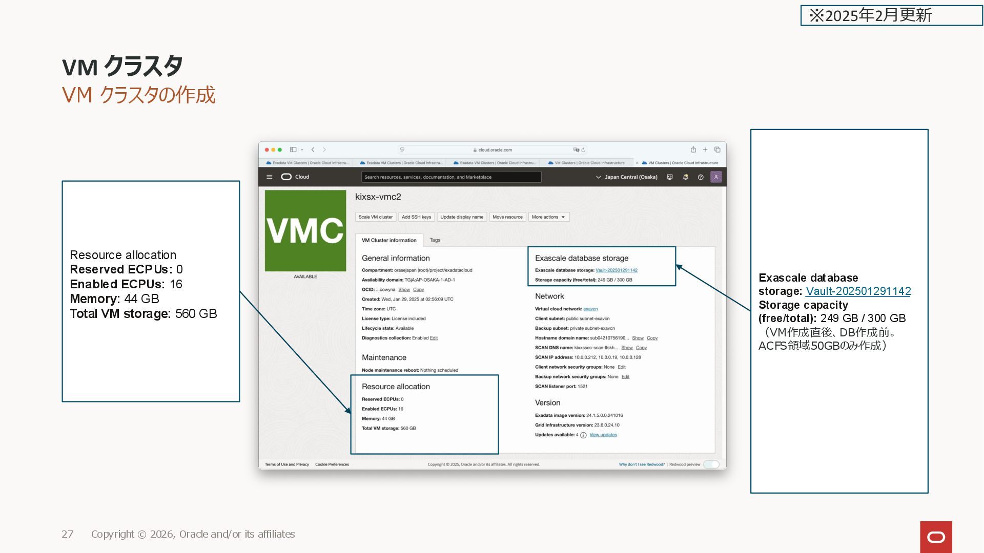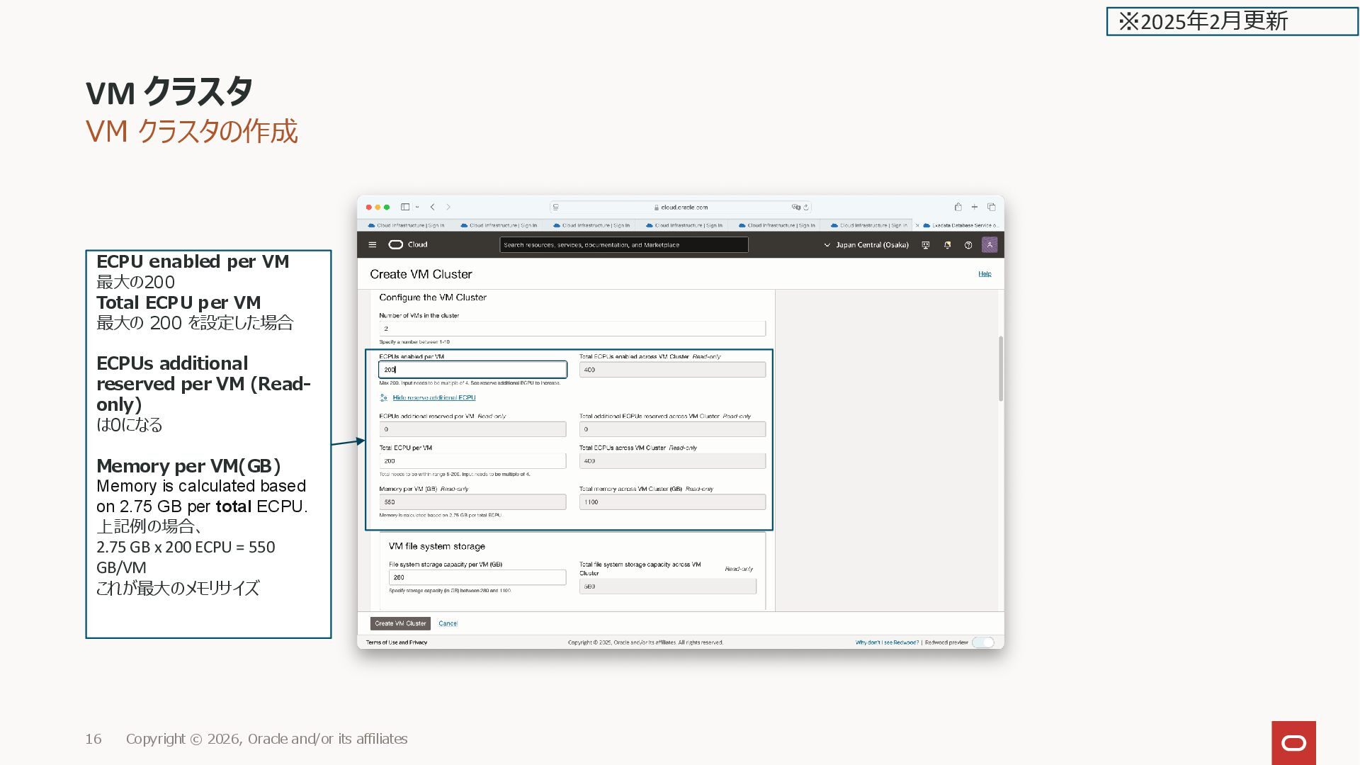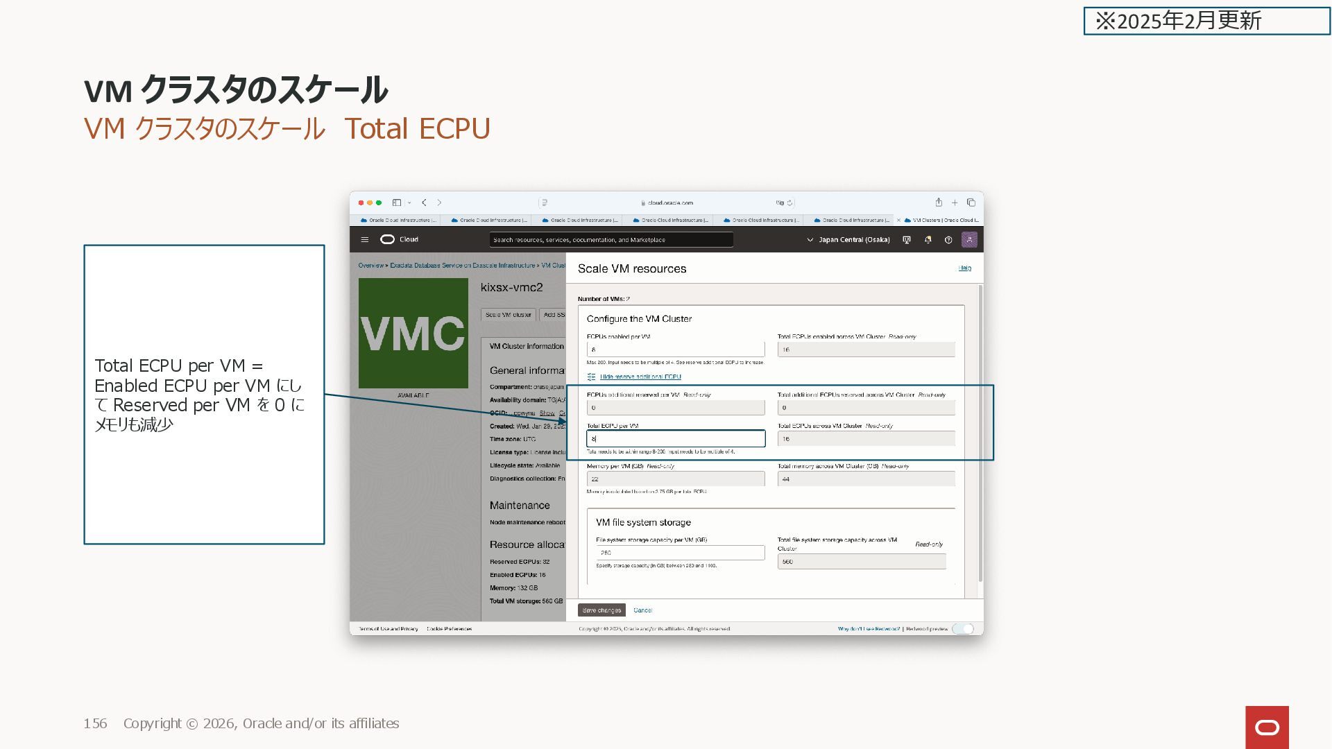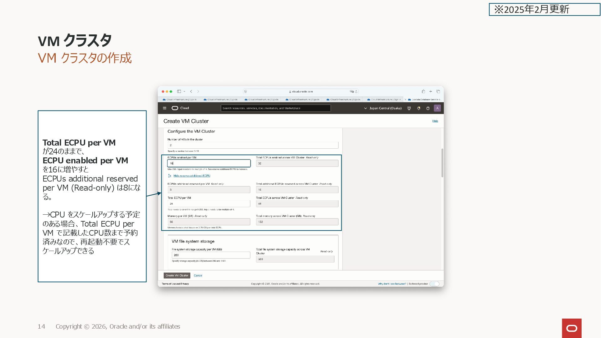 and/or its affiliates 143 Reserved ECPUs: 0 Enabled ECPUs: 16 Memory: 44 GB Scale VM cluster ※2025年2月更新