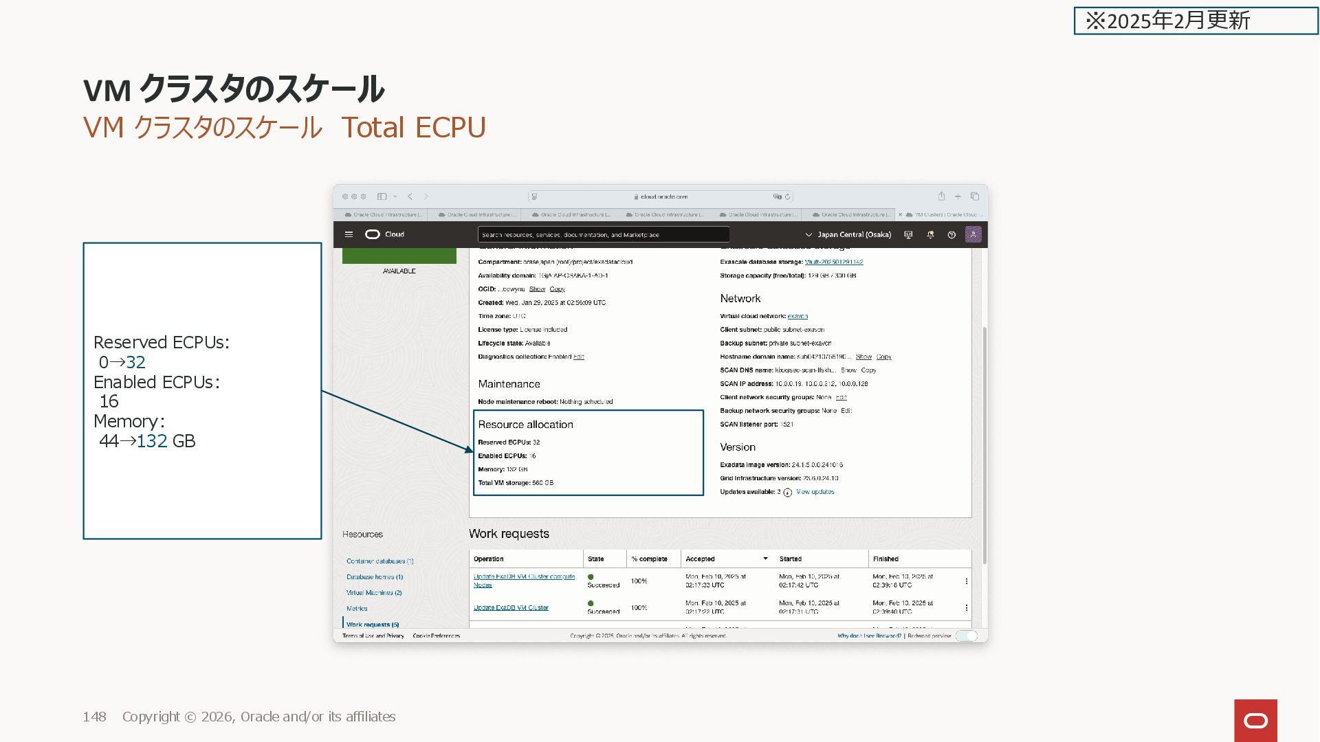 and/or its affiliates 148 Reserved ECPUs: 0→32 Enabled ECPUs: 16 Memory: 44→132 GB ※2025年2月更新