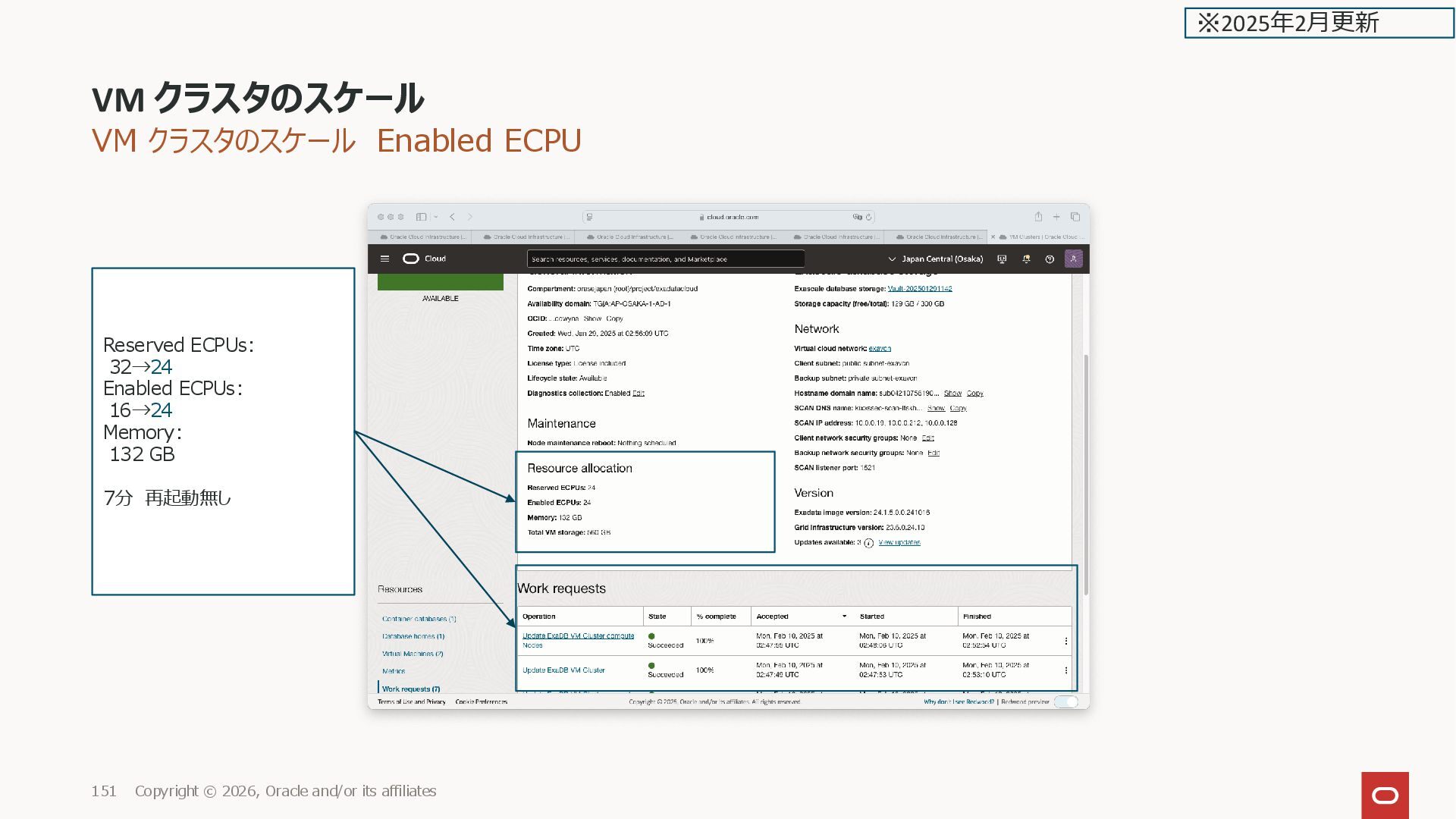 and/or its affiliates 151 Reserved ECPUs: 32→24 Enabled ECPUs: 16→24 Memory: 132 GB 7分 再起動無し ※2025年2月更新