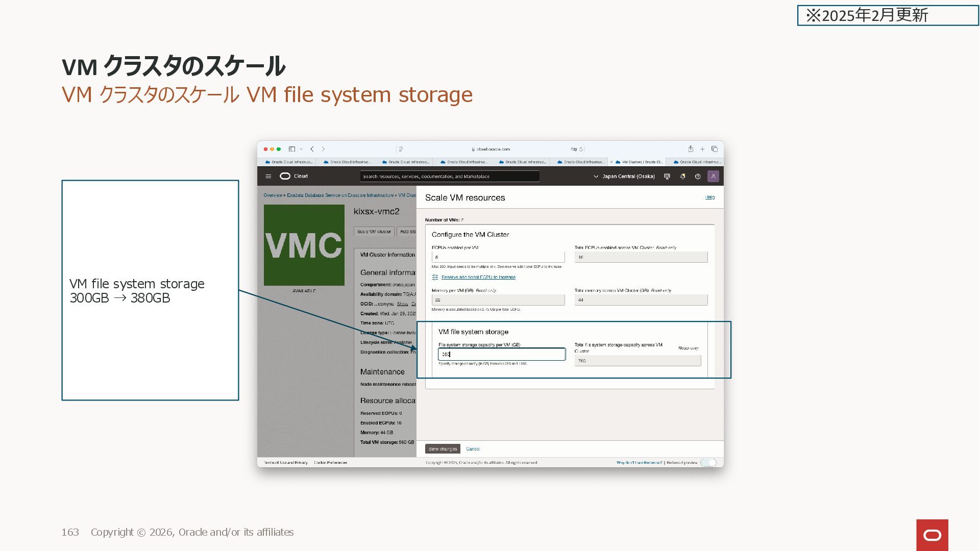 2026, Oracle and/or its affiliates 163 VM file system storage 300GB → 380GB ※2025年2月更新